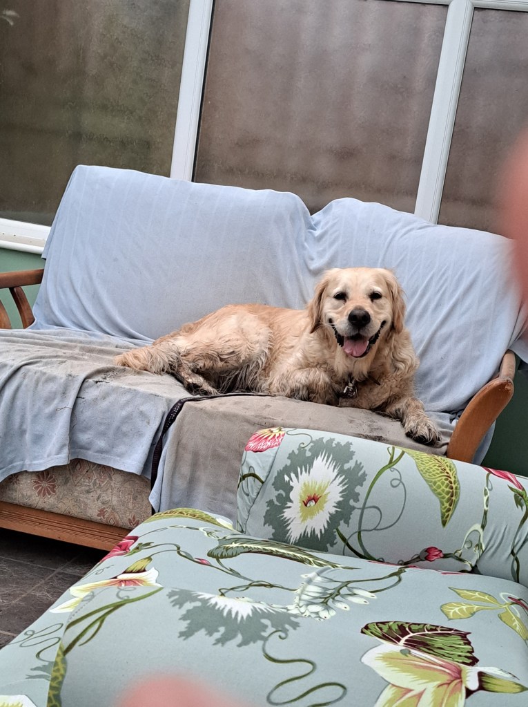 Inside our home she has her safe spots, the sofa in the conservatory is hers, but she also has a corner in my sewing room, another in my OH’s office. She still needs encouragement to join us on an evening in the lounge.