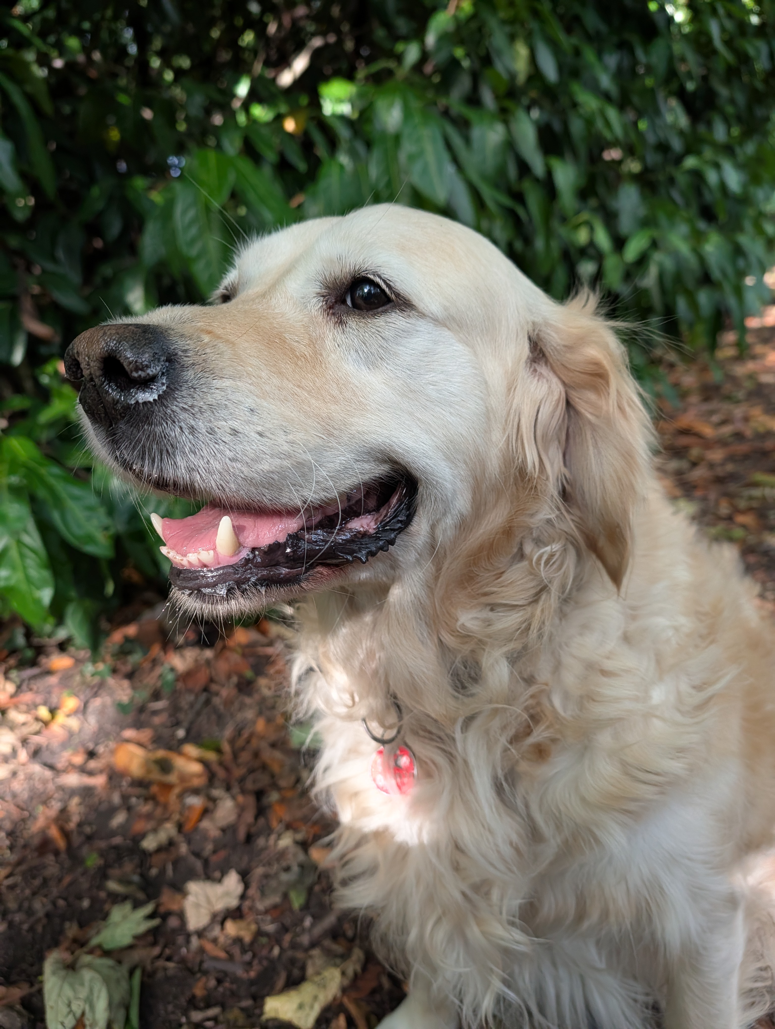 She is greatwalking both on and off the lead when I hold the lead up she sits and waits for me to walk up and put it on. She seems to understand when I put the lead on due to a potentially unfriendly dog as she sits for it to be removed as soon as we pass them! She doesn’t pull on the lead any more, or at least she doesn’t with me, she seems to understand that with me (due to balance issues) she mustn’t pull.