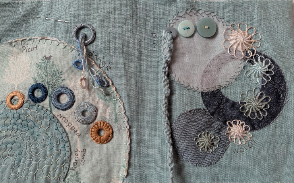 The page on the left still needs a bit of filling to one side I think, even if it’s just some running stitch circles.