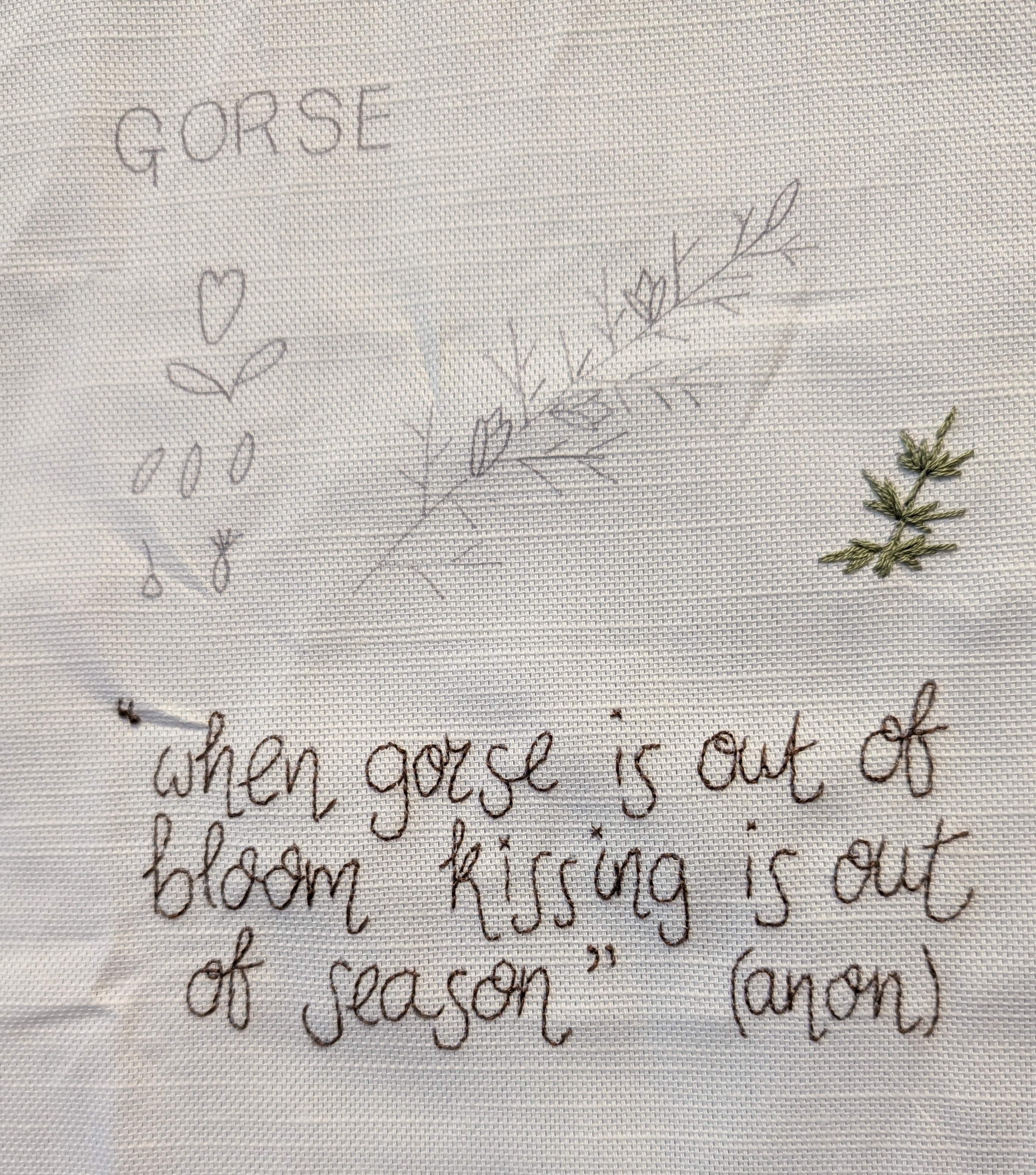 As you can see I haven’t started February yet and we’re nearly at the end of March! February is catkins, which have been lovely this year on the back lane. For March I’m thinking of primroses as they’re easier to stitch than daffodils!!