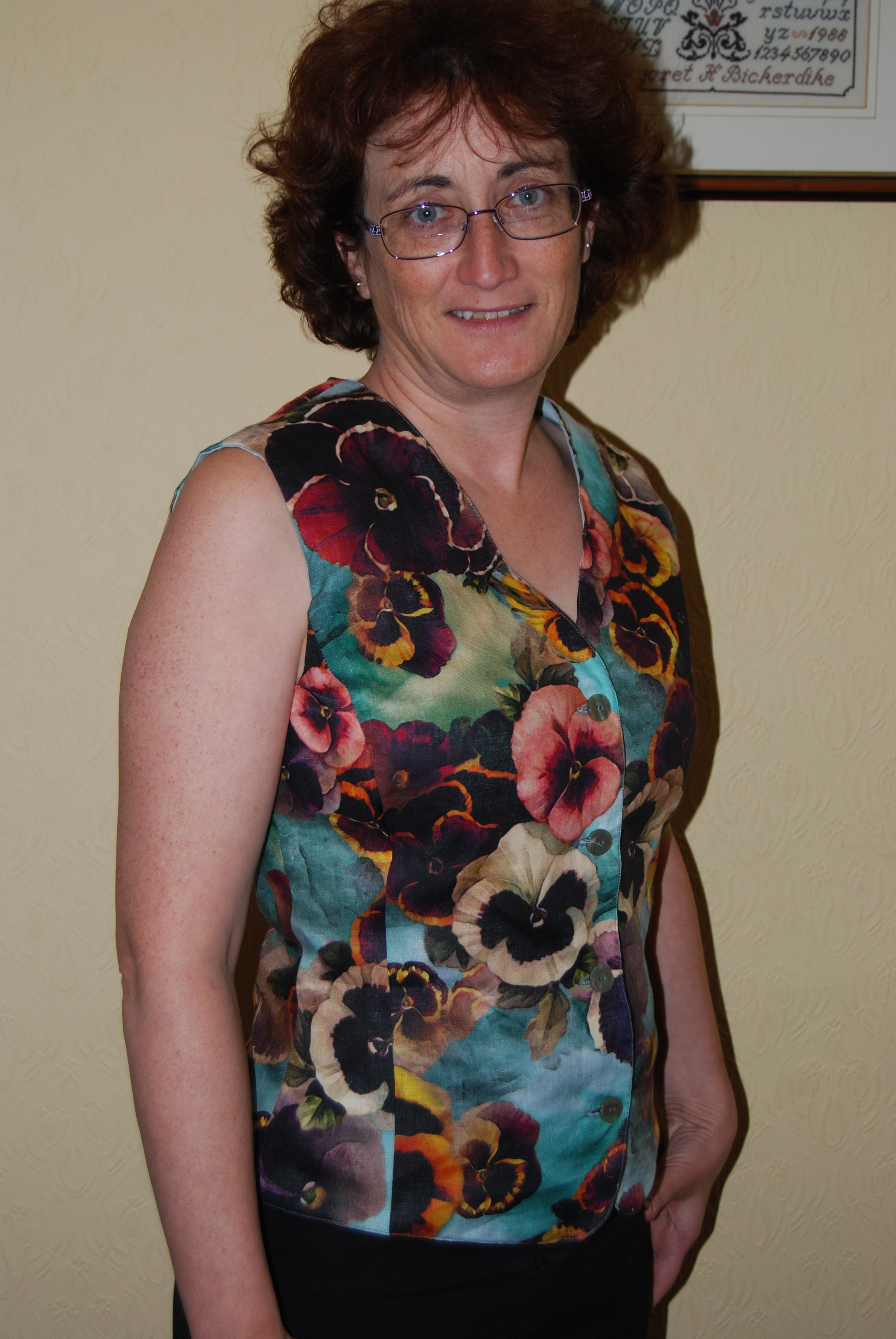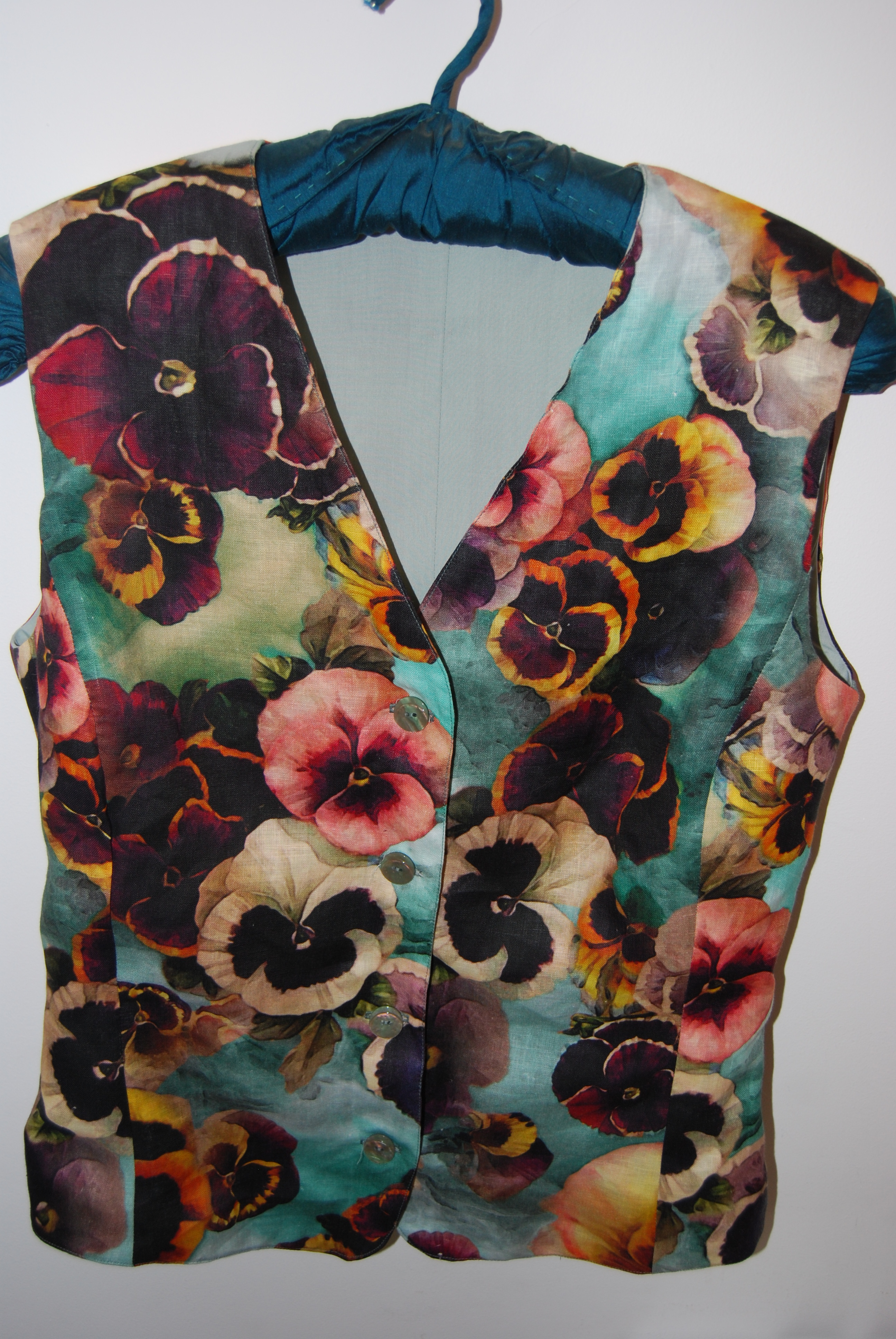 This is the second creation from the Goldhawk Road stash I bought in October. It was a complete impulse buy as I wasn’t sure what I would do with it, I just loved it! It’s linen with a digitally printed pansy design, I love the colours, it’s vibrant without being gaudy! It was £15 a meter so I could only afford 1m, however that is plenty to make a sleeveless top for the summer.