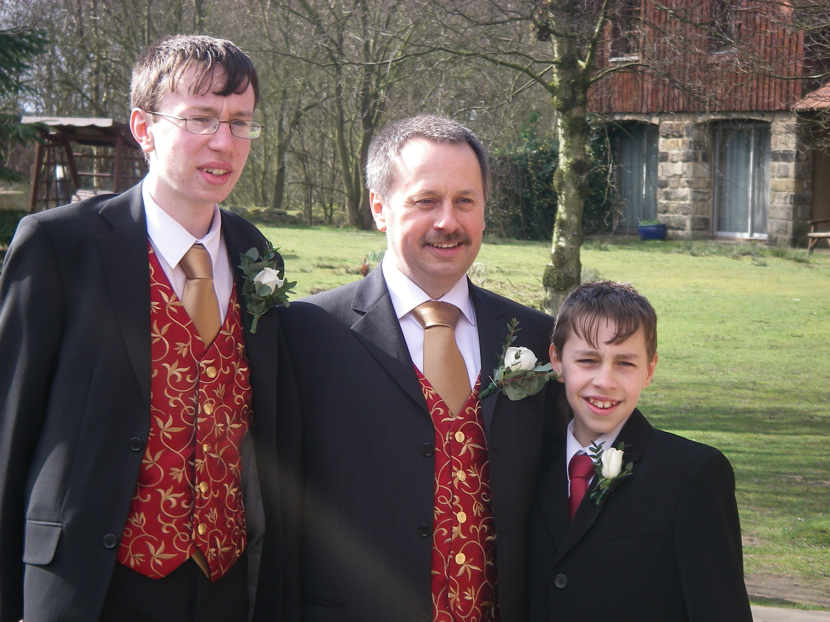 Day three, it’s the boys turn! I’d made my wedding dress over the summer holidays, then my daughters bridesmaid dress, my next job was to make all the boys a waistcoat each. I had four to make altogether, two fancy ones for the groom and the bestman, and two simpler ones for the ushers. Ken’s eldest son was his bestman, he did a fantastic job, especially considering he was only 16 years old. Our two remaining sons were ushers.