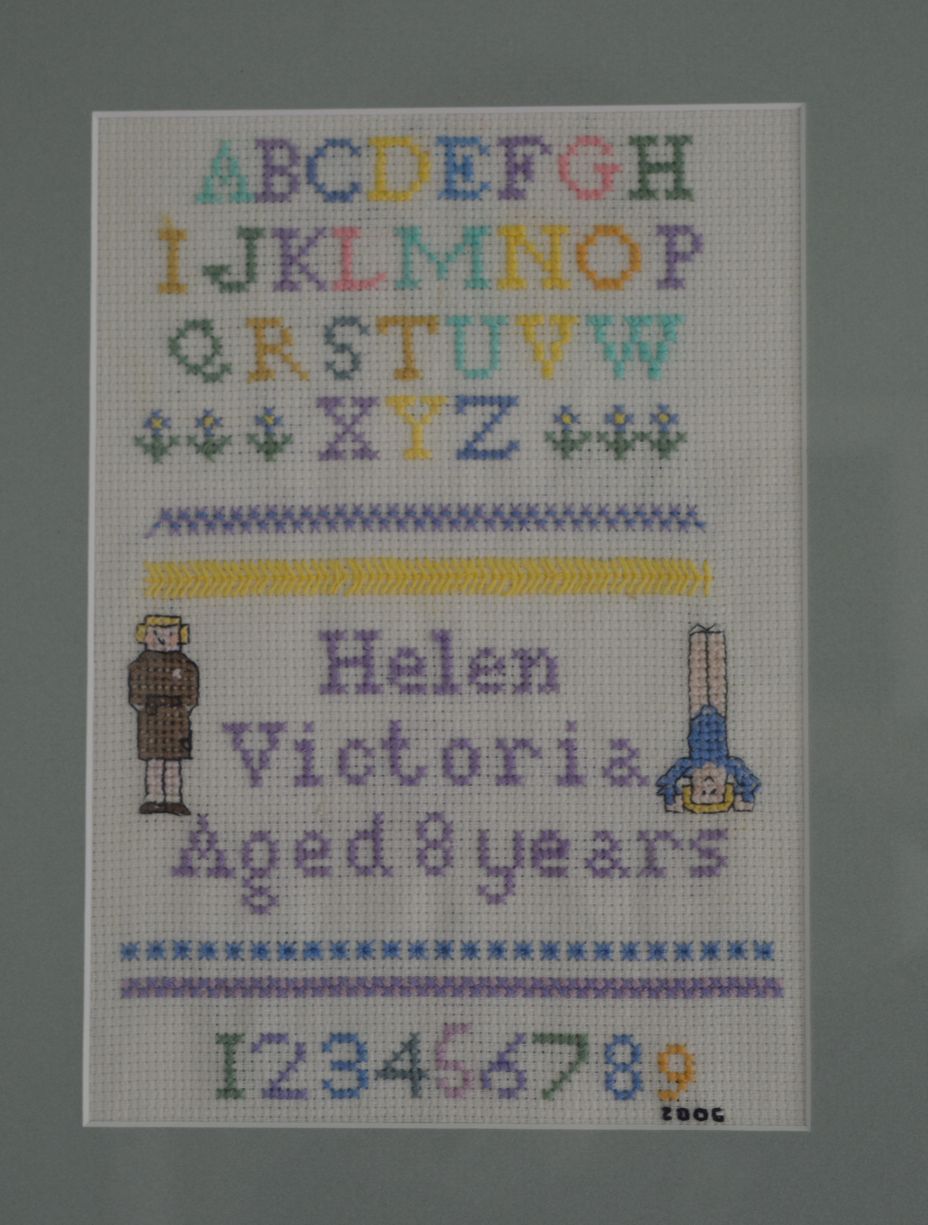 I was absolutely thrilled last night when Helen gave me my birthday present, she has secretly designed and made a cross-stitch sampler all about me!