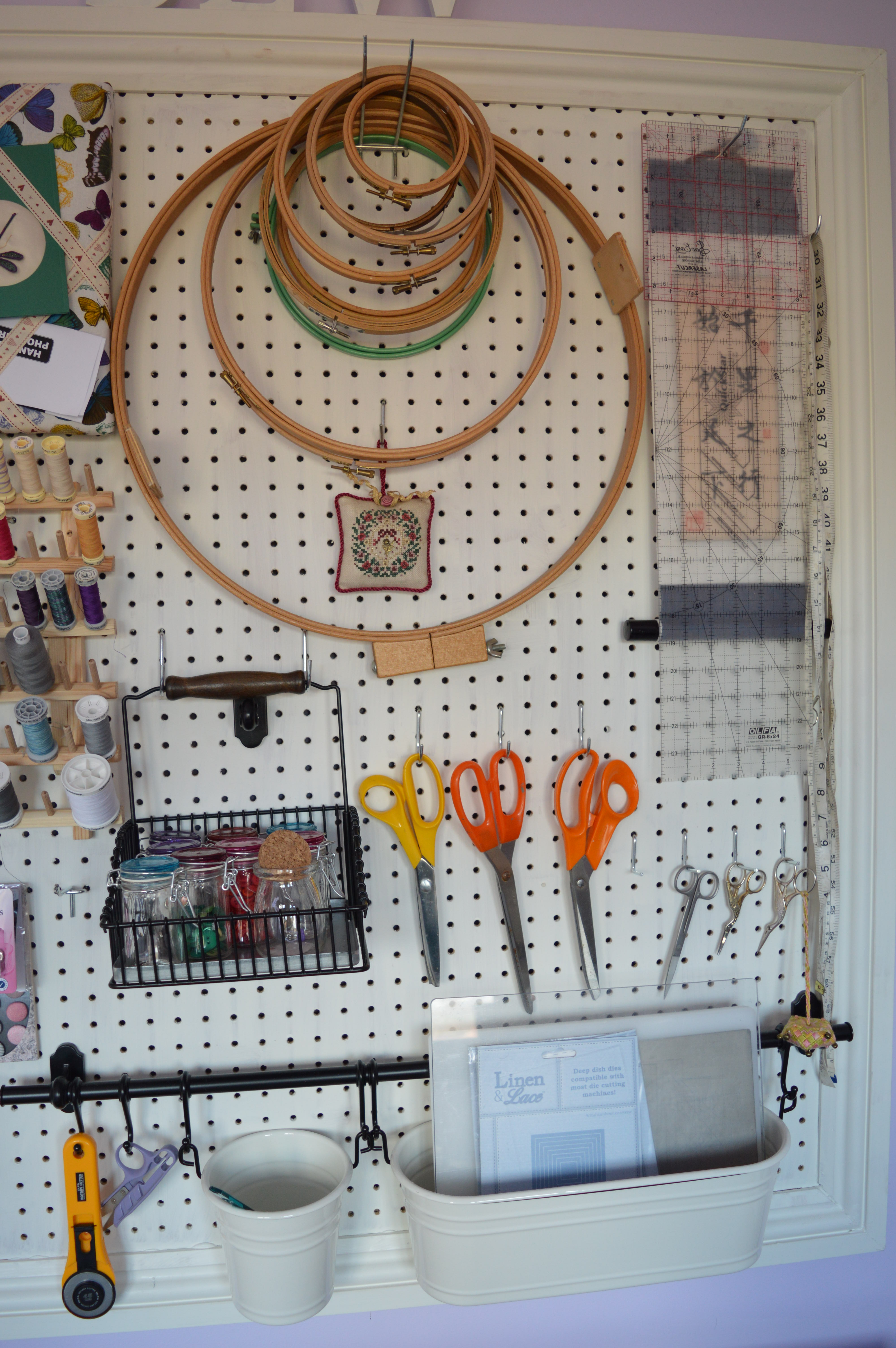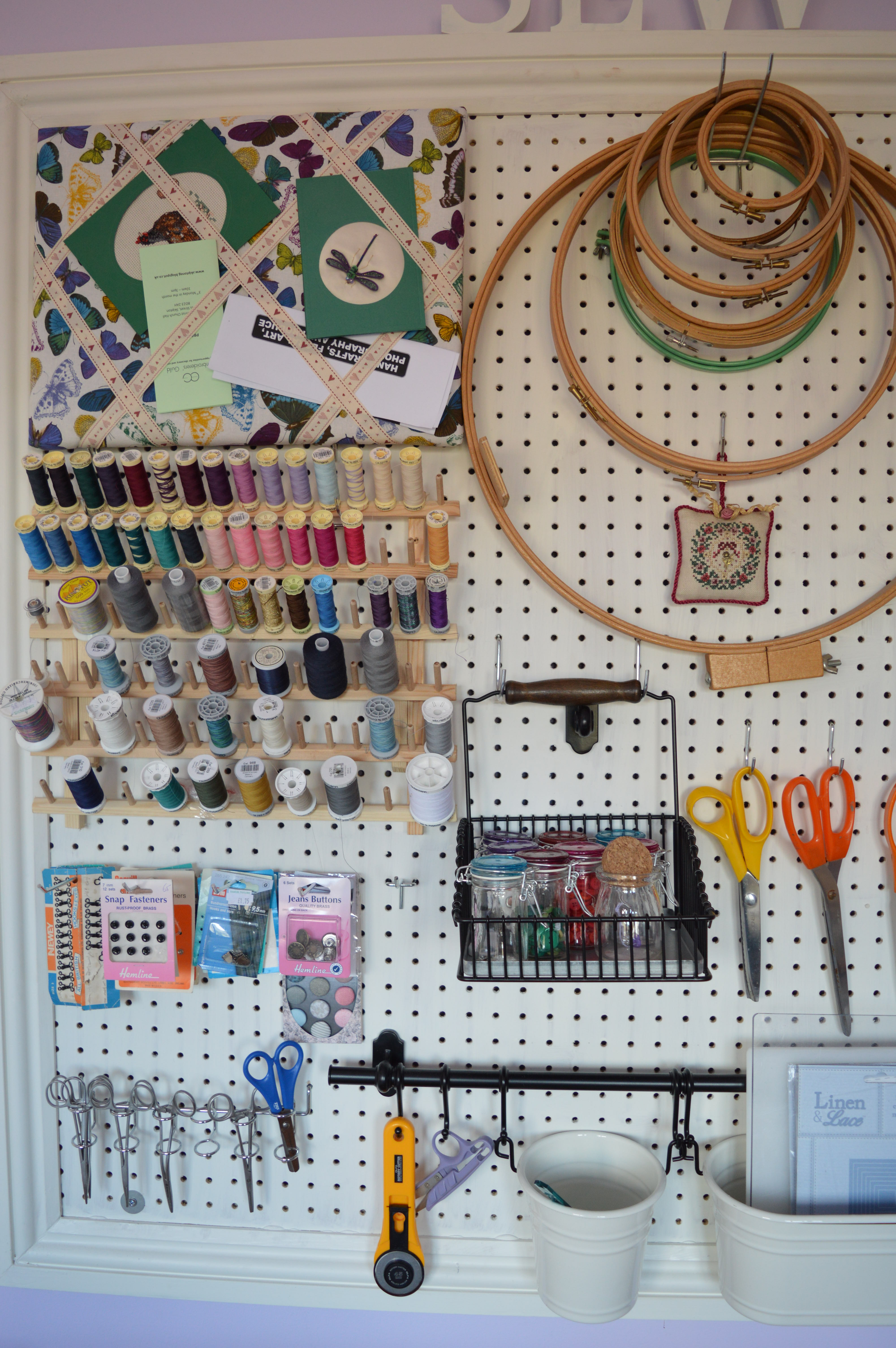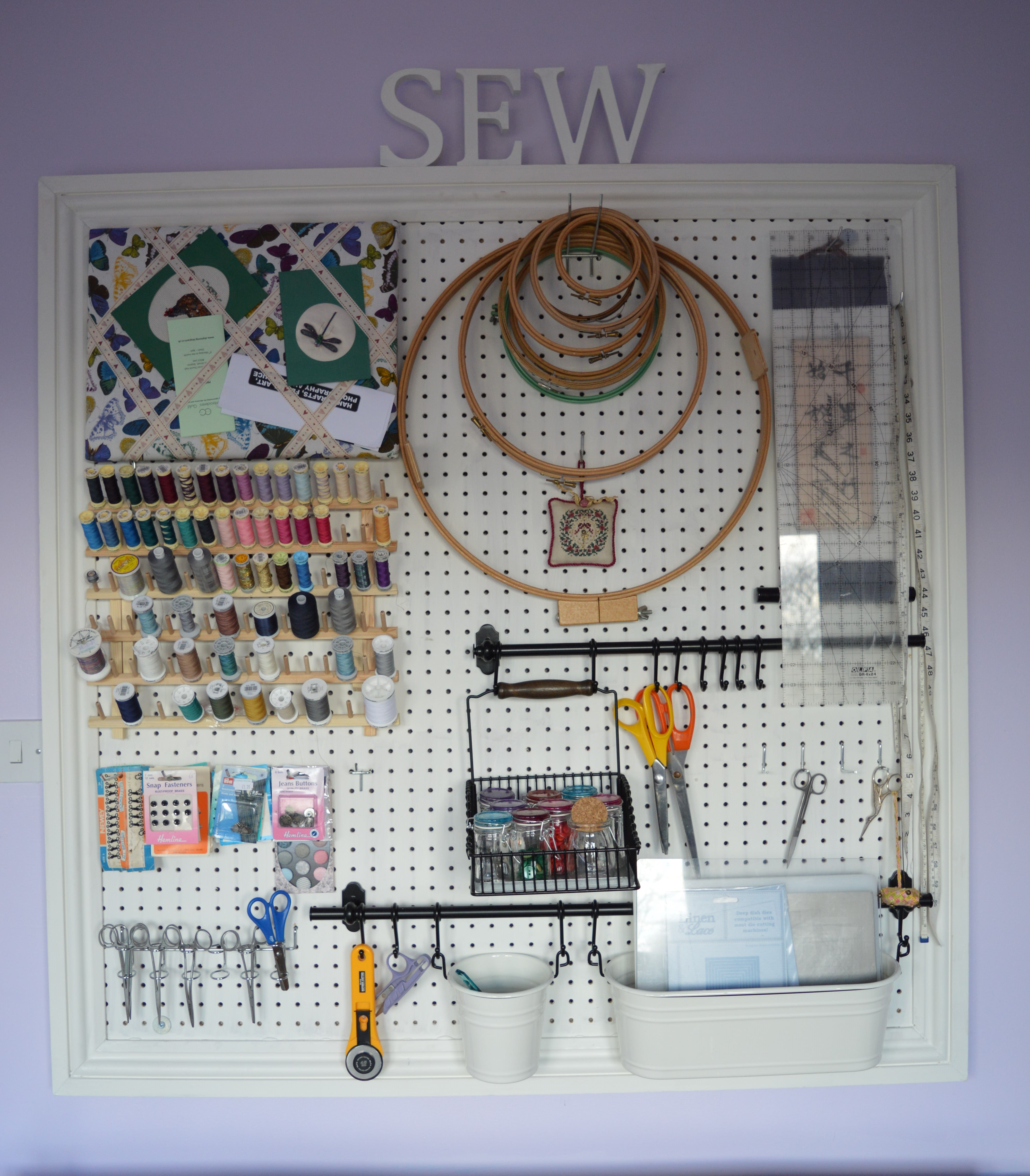 When I was planning my new sewing room I spent rather a lot of time browsing the internet looking for ideas, particularly for storage. I came across a post on Honeybear Lane about how to make a large pegboard for a sewing room, I loved the idea of having everything in its place but easily reachable. The tutorial was great in explaining how to make one.