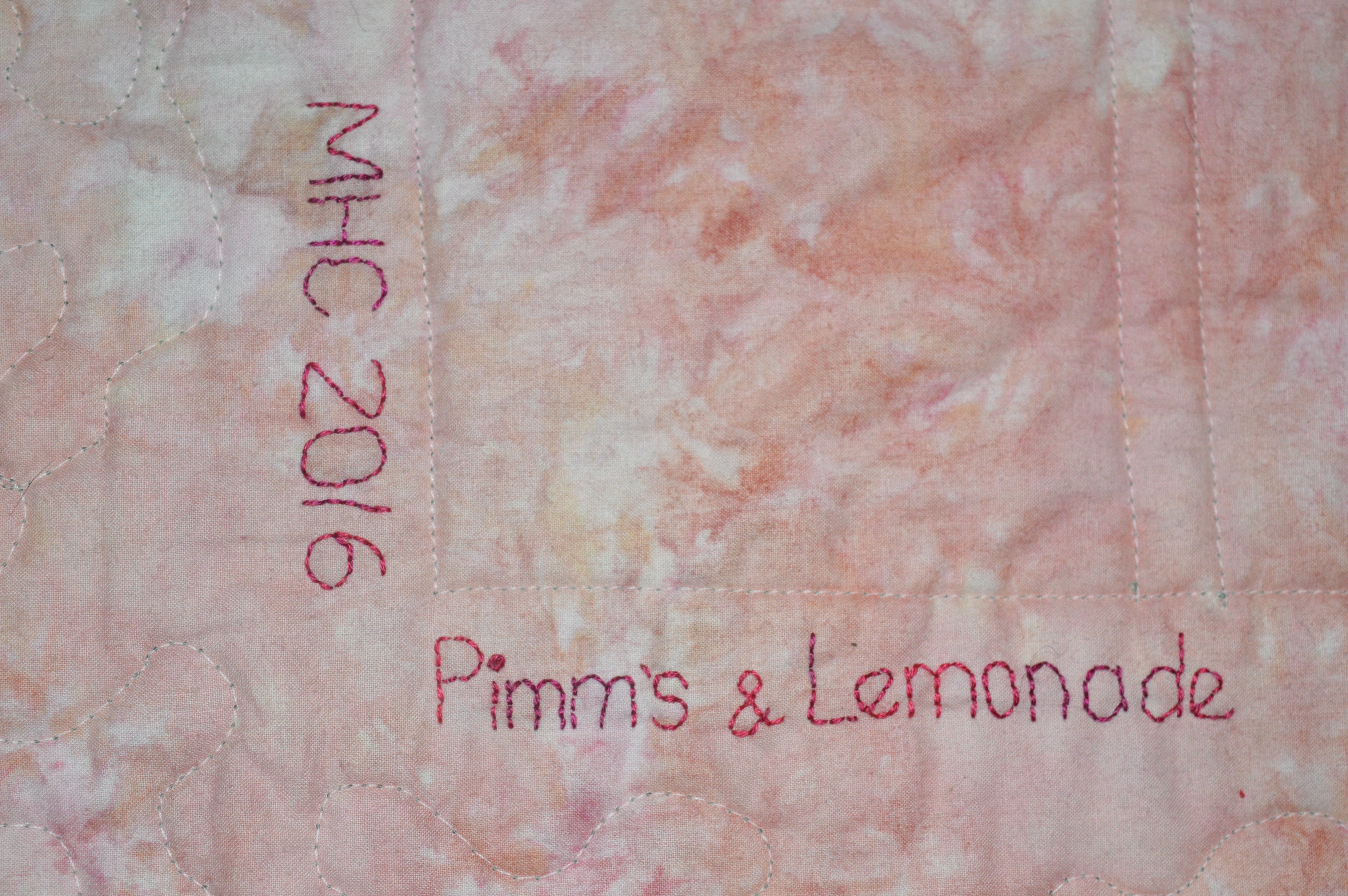 As soon as I thought of Pimms & lemonade I thought that’s the name for the quilt, the colours are perfect, mint green, strawberry pink, it’s a very flowery quilt and it just reminds me of days sitting in the garden with a Pimm’s & Lemonade, decorated with a few borage flowers.