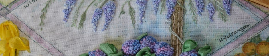 Wow, just beautiful! I love your wisteria. I’ve never done much (as in any!) ribbon embroidery, and I’m enjoying watching you stitch this great little design up.