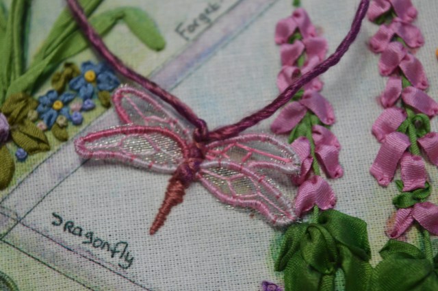 Gosh, you really have done a lot this time! I love your little dragonfly. I’m most impressed at your dying ribbon skills, it looks great, and fits in with the piece beautifully!