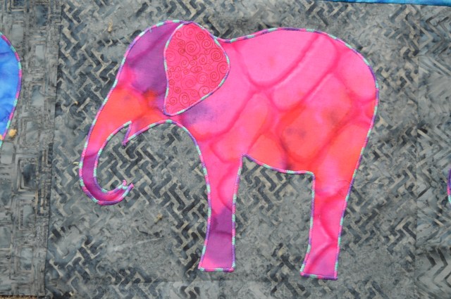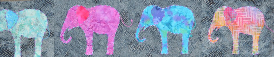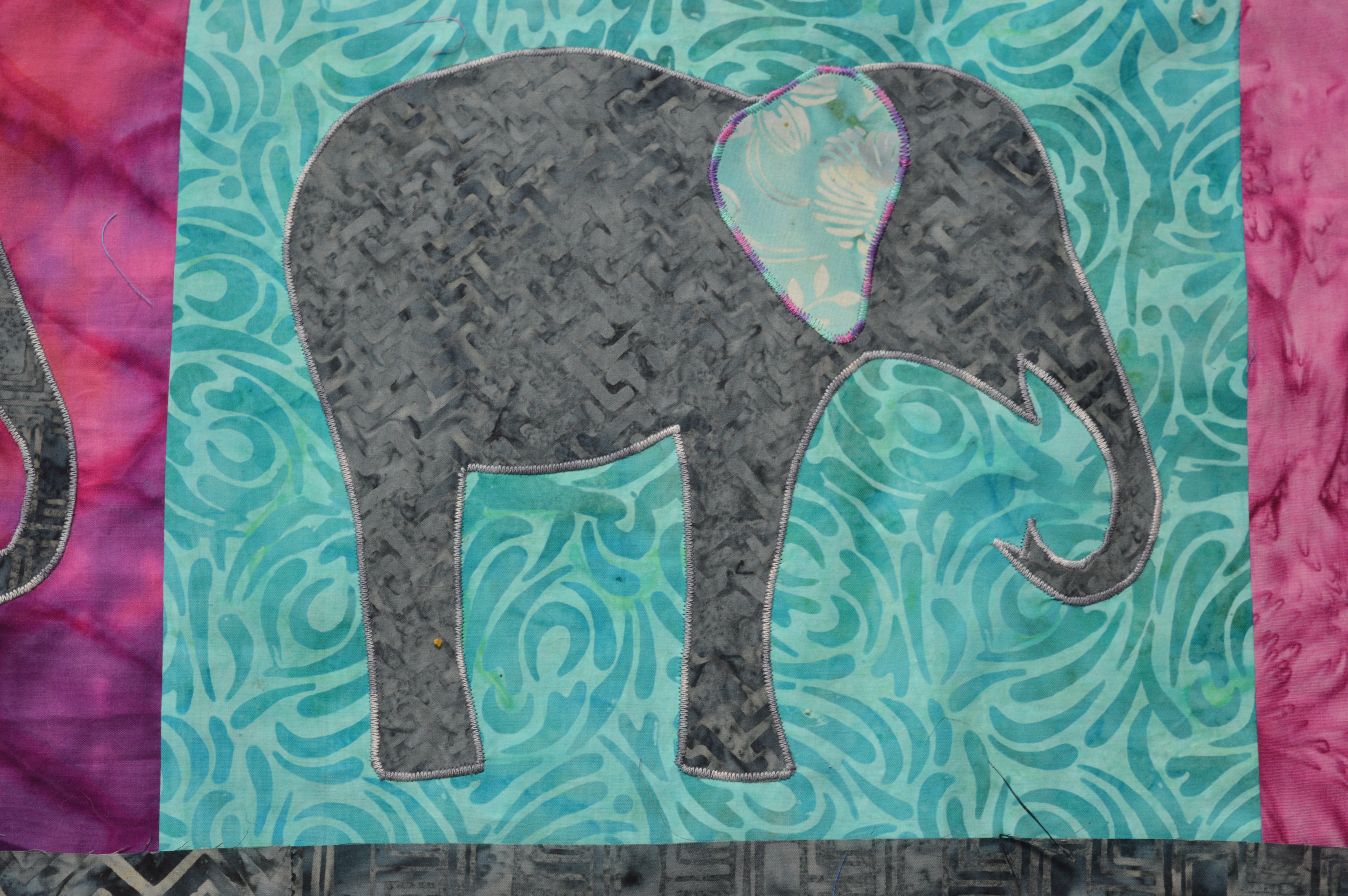 This is such an excellent use of batiks – they go so well with the elephant theme. The satin stitch looks great too, it really gives the elephant shapes a defined edging. I like the tails – the more swish the better for happy elephants – and I’m looking forward to seeing how you do the little tufts of hair. I can’t wait to see the finished quilt, will we have to wait until after Christmas?
