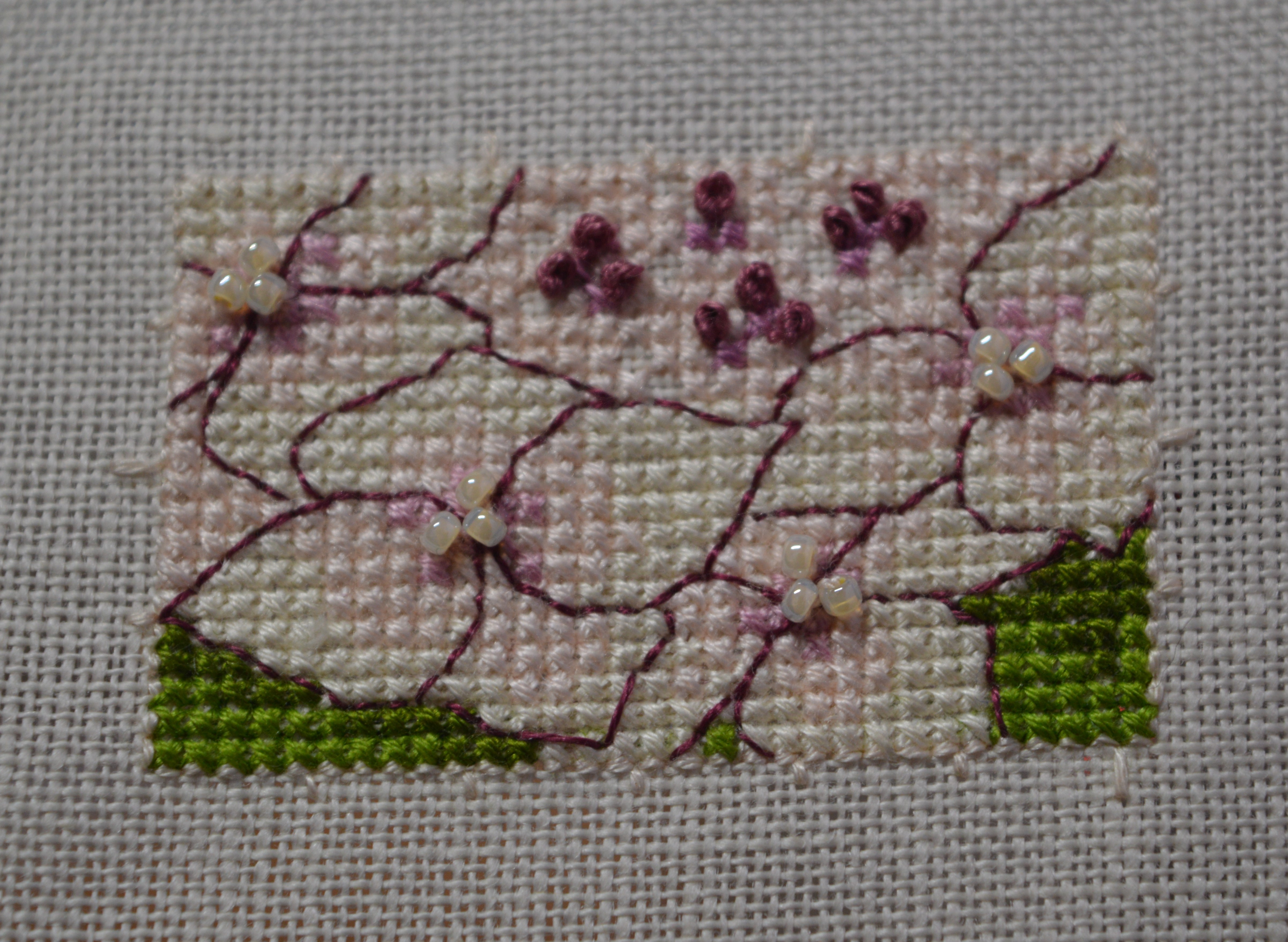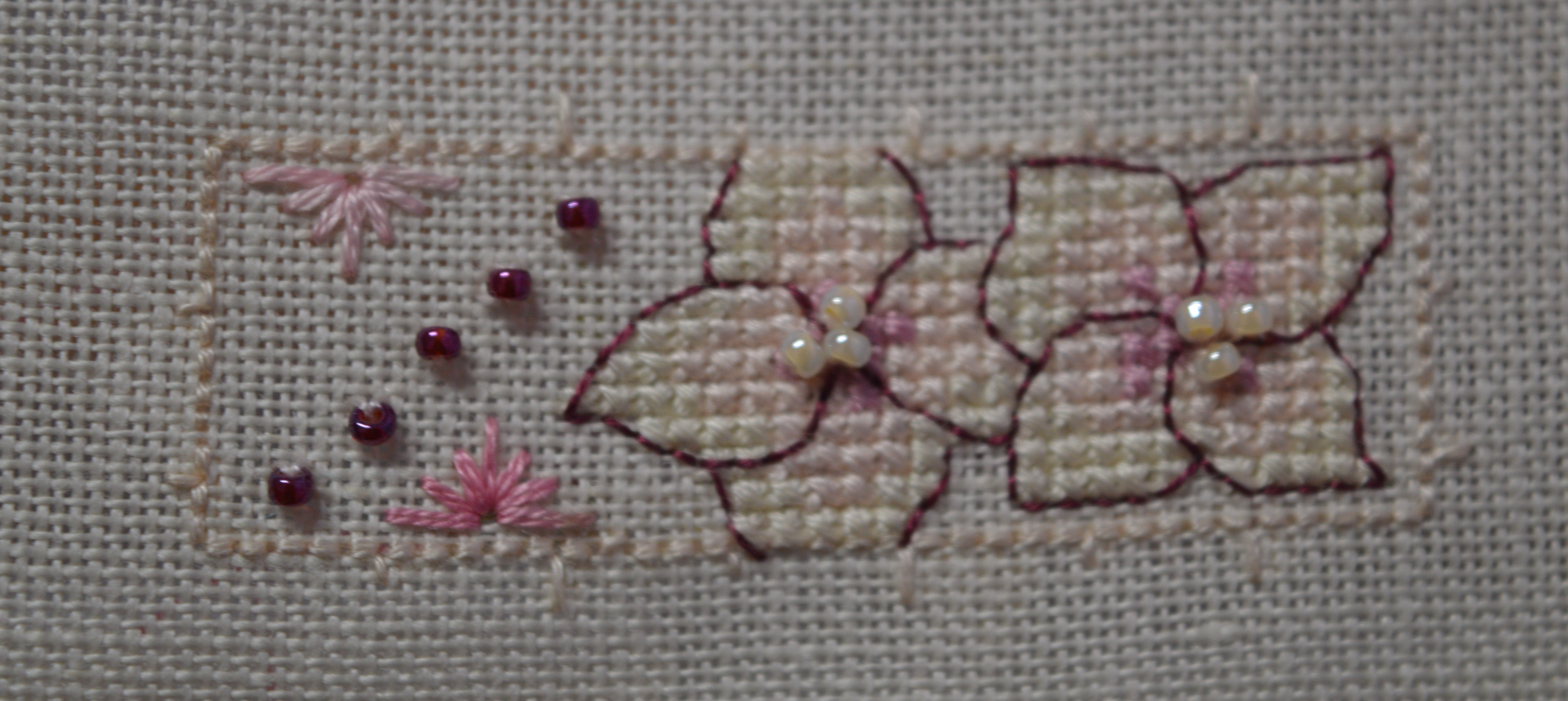 This is such a pretty piece! Backstitch is one of those stitches I struggle to get neatly stitched at the best of times. Your pink beads look lovely!