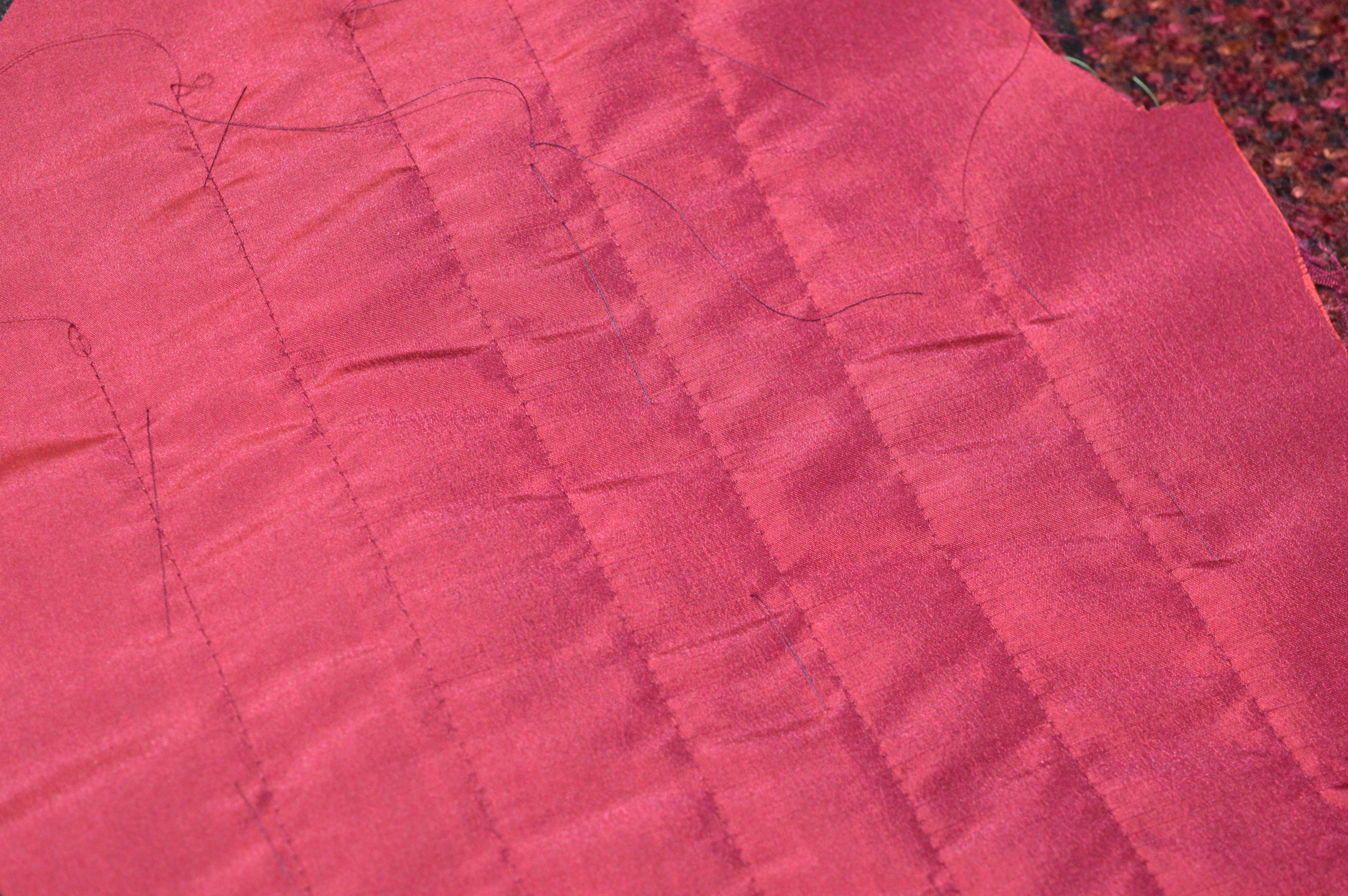 Funny thing is, you can’t really see any quilting. It’s all about adding structure, isn’t it? I think you were wise to hand- rather than spray-baste, as you don’t really lose the sticky till the piece is washed, and this isn’t a garment you’ll be slinging in the washing machine, is it?