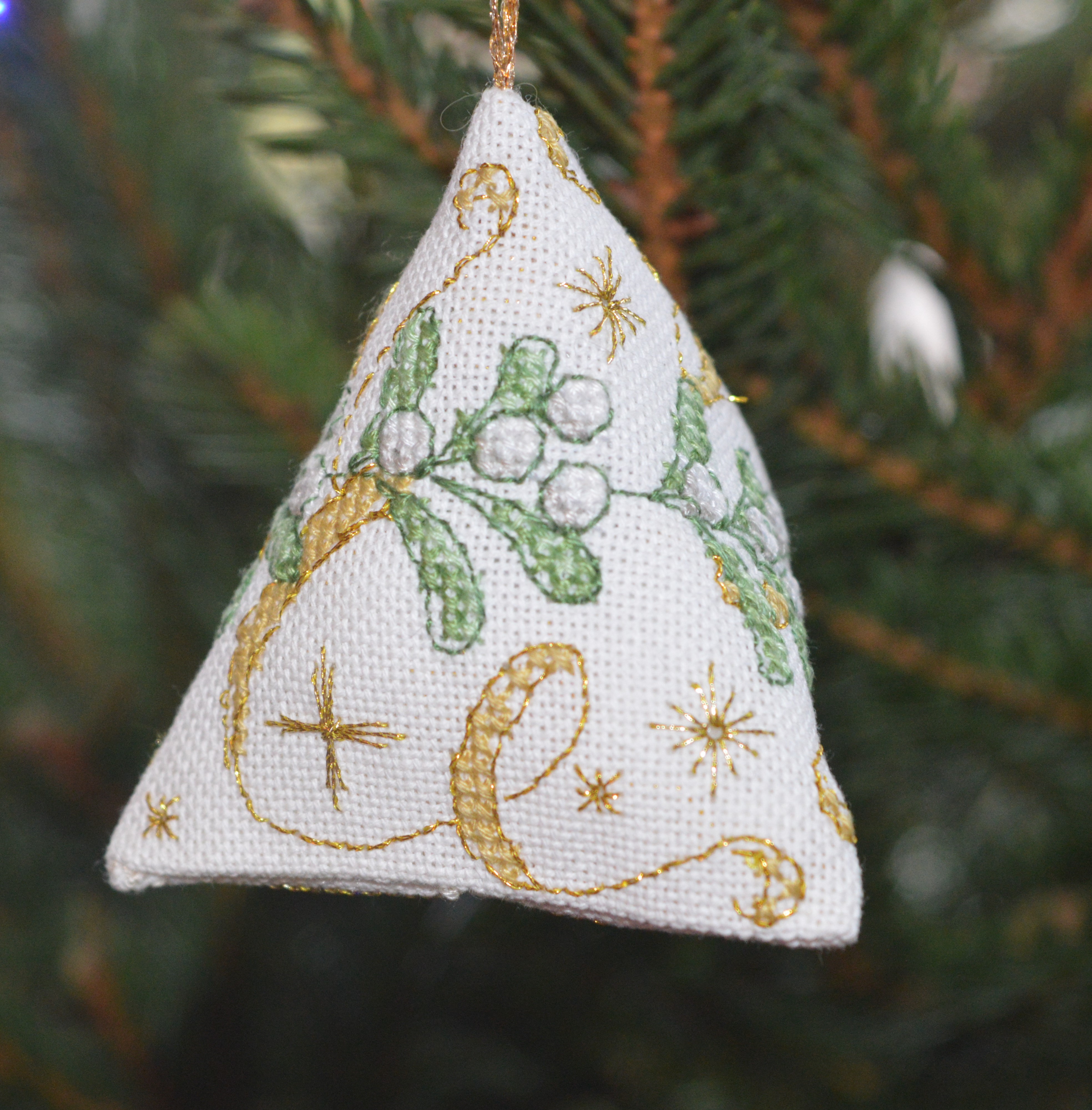Last year I stitched a Mistletoe humbug and it’s my favourite Christmas decoration this year, so much so that when I got a discount code at the end of the Lizzie Stitching Wallet stitch-a-long I bought the patterns for about another six humbugs!Mistletoe Humbug, gorgeous cross-stitch  Christmas decoration.