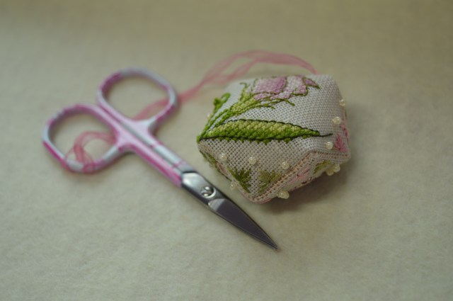 I had a tiny pair of gold embroidery scissors confiscated in Sydney, despite the fact that the blades were less than an inch long… too pointy, apparently. I’ve tried the Clover pendant thingy but can’t seem to get a clean enough cut. My favourite is a minute pair of Japanese ‘mini-scissors’, with rounded blades about 8mm long, and a spring between two button-like handles to squeeze to close the blades. There’s a guard to go over the tip to hold it closed and make it safe. I can get those, plus a silver needle case, plus some antique wooden bobbins wound with thread, into a little tin for plane travel. Works like a dream.