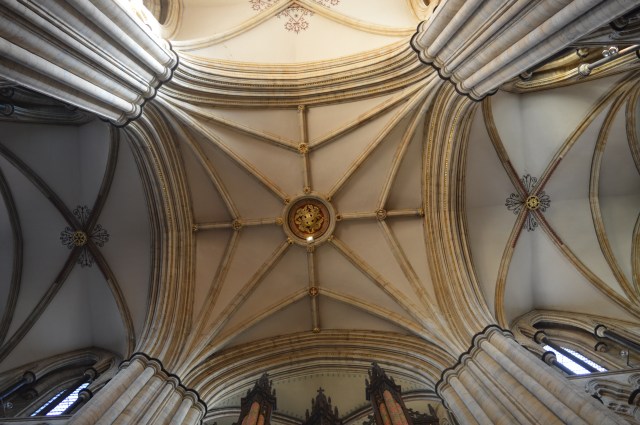 I went to Beverley Minster for the first time last year, it’s a beautiful place, soaring pillars with gold bosses on the ceiling.