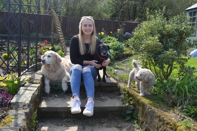 This is Helen with our three dogs, enjoying the spring sunshine sitting on the steps in the garden. Lucy, the fluffy one on the right is our latest addition, she’s my mums dog who is now living with us. You can just see behind them the wooden steps out of the garden, I’m just a bit proud of those as I made them many years ago, just by hammering upright posts in and then standing the riser behind and filling up with gravel.