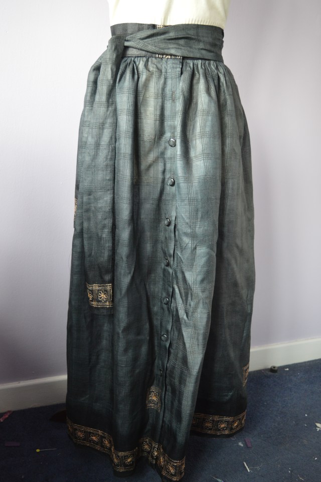 The main length of silk with a border on was made into a skirt in June 2016, however I have to admit I’ve hardly worn it, mainly because I didn’t have a top to go with it!