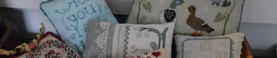 Yesterday I changed my little display of cross-stitch smalls with the beginning of the new month.I’m rather enjoying putting together these little groups, deciding which can stay and which to change. They’re all together of a burr elm bowl, which isn’t perfect shape wise as it isn’t really deep enough, but I love having a use for such a beautiful piece of wood.