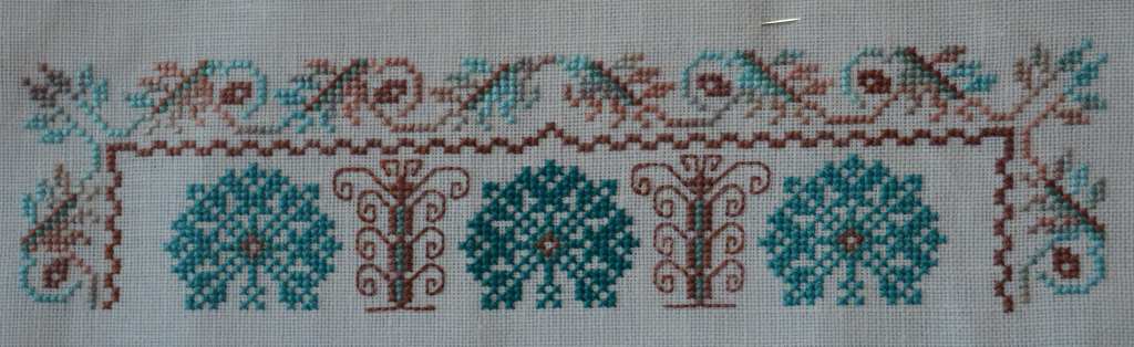 I’m now a quarter of the way through my Enlightenment SAL having completed the first row, I love the colours in this one and it will be interesting to see how the design develops on the next row. I changed the colour of two of the trees to a slightly lighter one and I’m pleased with how that’s worked out, they’re not quite so dark as the central one in the recommended DMC version…