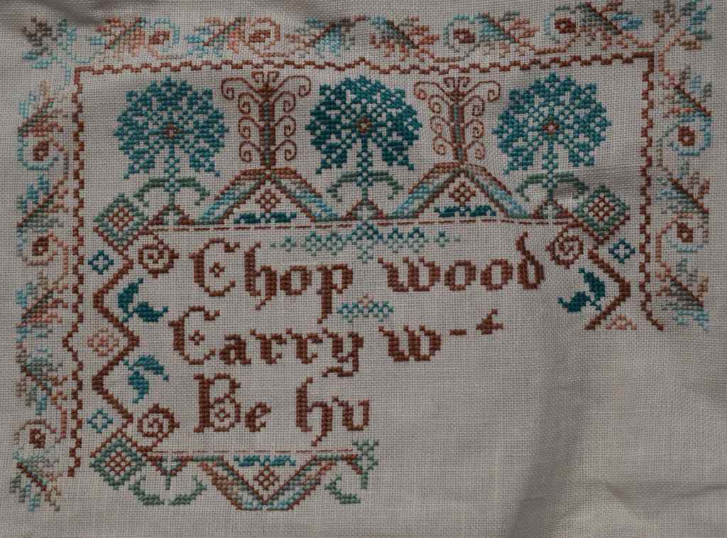The Zen sampler is moving on square by square, this is the 10th square out of 16. I think the last line is going to say ‘Be humble’. It looks like the bottom is going to be a mirror image of the top, which means I’ll have to order some more brown thread!
