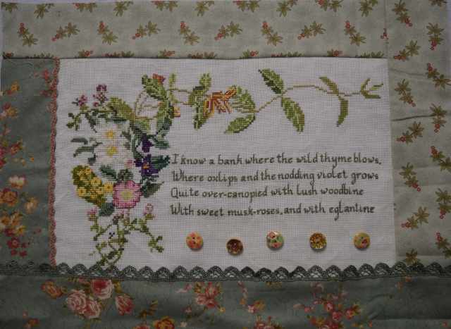 Two more cross-stitch pieces just needed a fabric border and a bit of embellishment. The one with a dove on seemed to be finished apart from the last six letters (???) luckily it didn’t take much to work out it was meant to say eternity. The Footprints in the sand one was finished, just never made into anything.