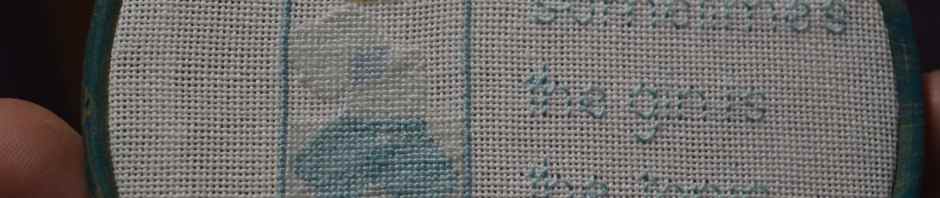 I finally finished it yesterday evening, the lettering was meant to be cross-stitch but I’d had enough of the tiny cross-stitches by then and just used back-stitch. If ever I have the bright idea of stitching over one thread again, feel free to slap me!!!
