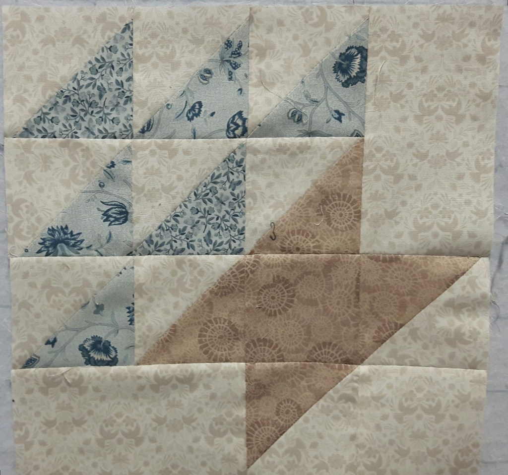 The instructions in my book used a large triangle for the top half of the basket, I find it much easier to just use half square triangles and a square. This time my blocks were just a shade lighter…