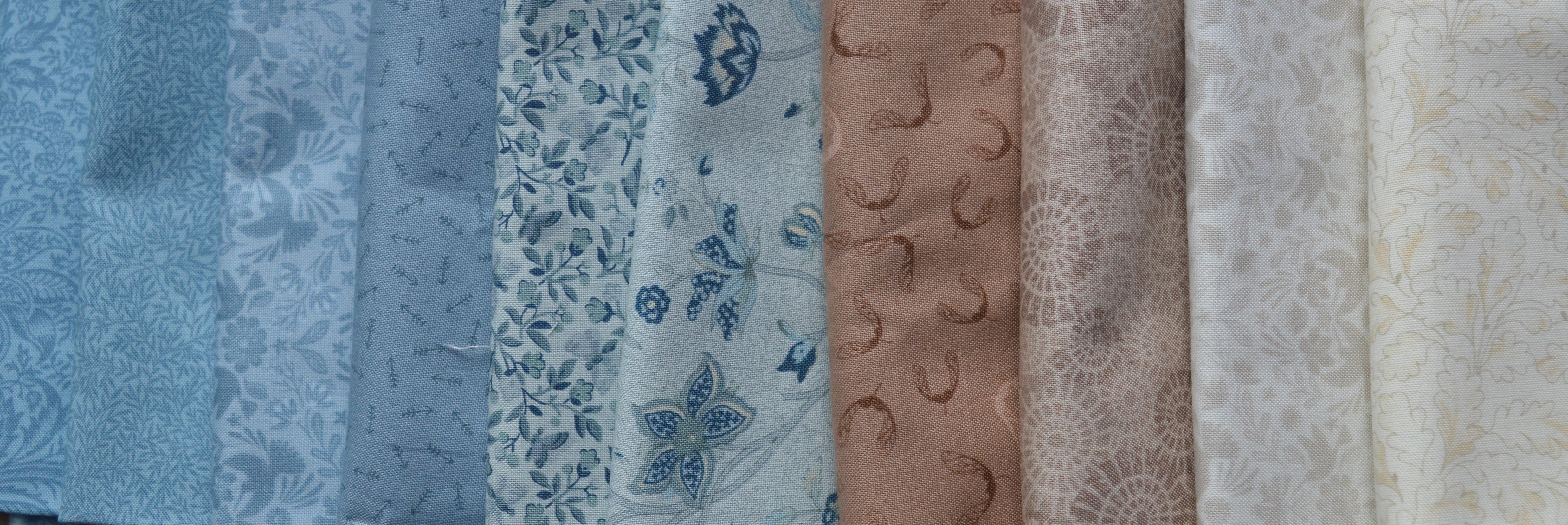 Of course having chosen my colours, when it came to making the blocks I realised I had very few fabrics myself in these colours! I had a look on the Wool Warehouse website and found a selection I liked. They have a useful feature on their site where you can pull all the fabrics you fancy onto one project page to see how the work together, I had a good play with various fabrics and I was very happy when the bundle arrived…