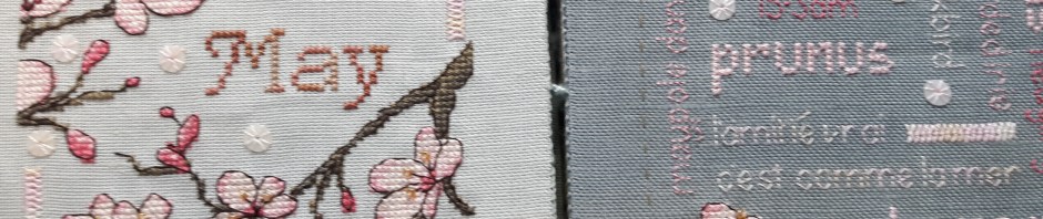 I had left myself a fairly small flange front and back to stitch the pages to the cover, not through choice, but my fabric stash of 32 count linen was pretty depleted! You may also remember that I had a slip up with the scissors when trimming the front page. Of course this ended up in a crucial place!