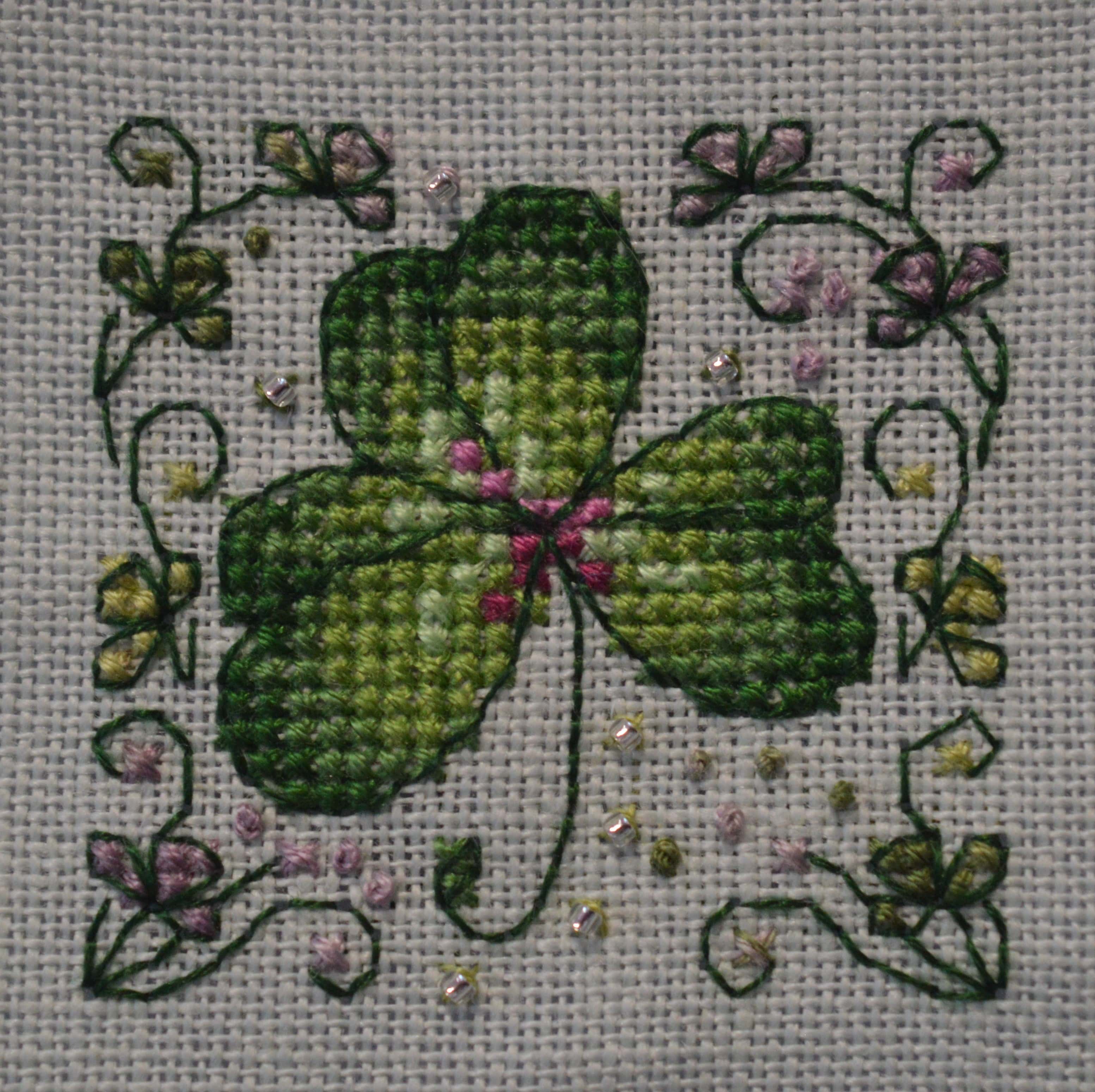 Next to be finished was a cloverleaf design which I stitched last year (I think!) it was a freebie from Faby Reilly. It’s less than two inches square, little and cute.