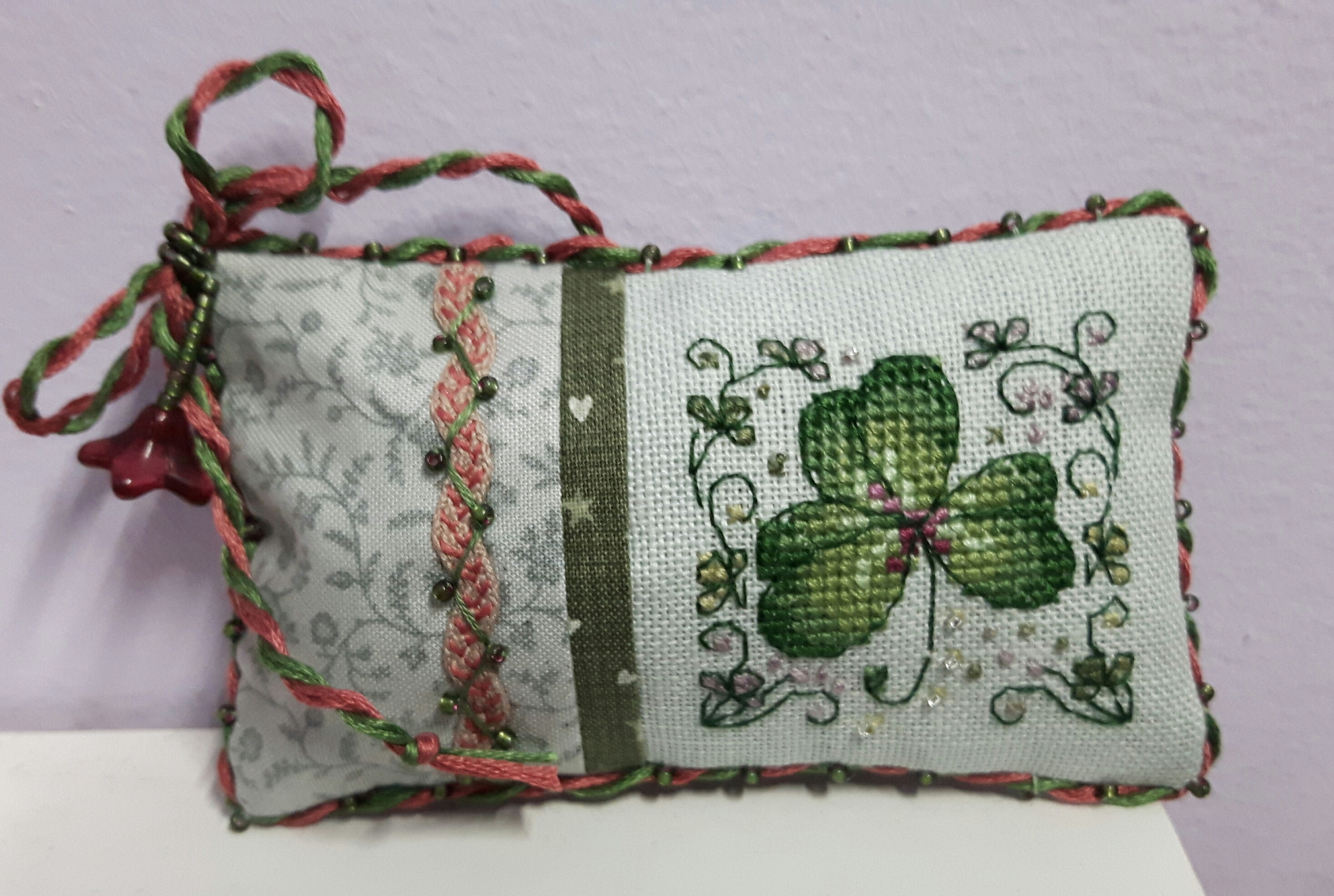 your finishings, into little cushions, are always a joy to behold. You really have an eye matching your fabrics, threads & embellishments. They’re all lovely and yes, the clover one will be a lovely decoration for St Patrick’s Day in March ^^