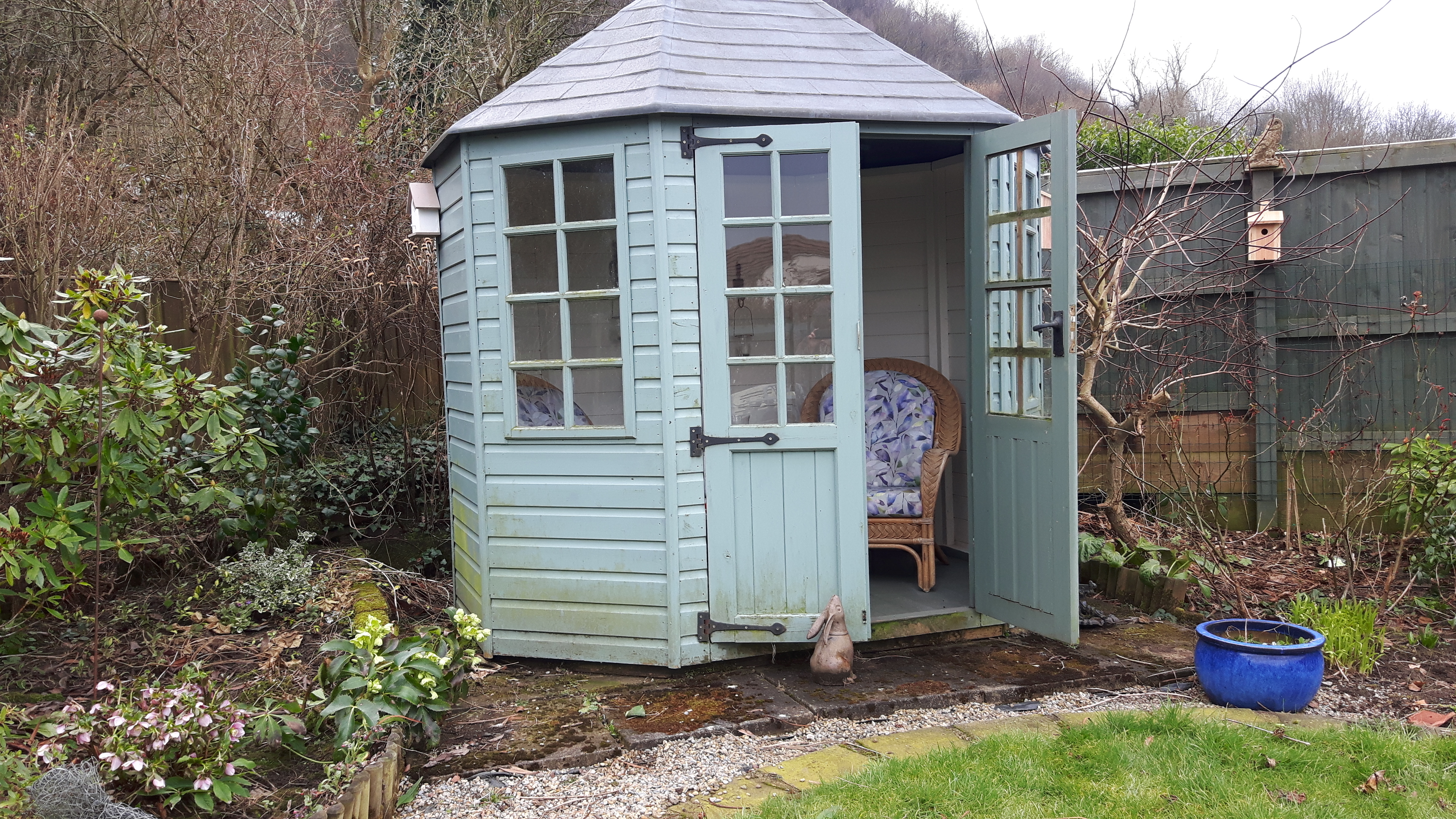 The summerhouse is in need of a coat of paint but it’s still my favourite place to sit and have a cup of coffee when I’m out in the garden.