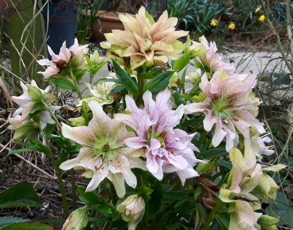 We have inherited lots of hellebores – they’re all over the place and I’ve appreciated that they’ve been blooming since we arrived in November and still going strong now.