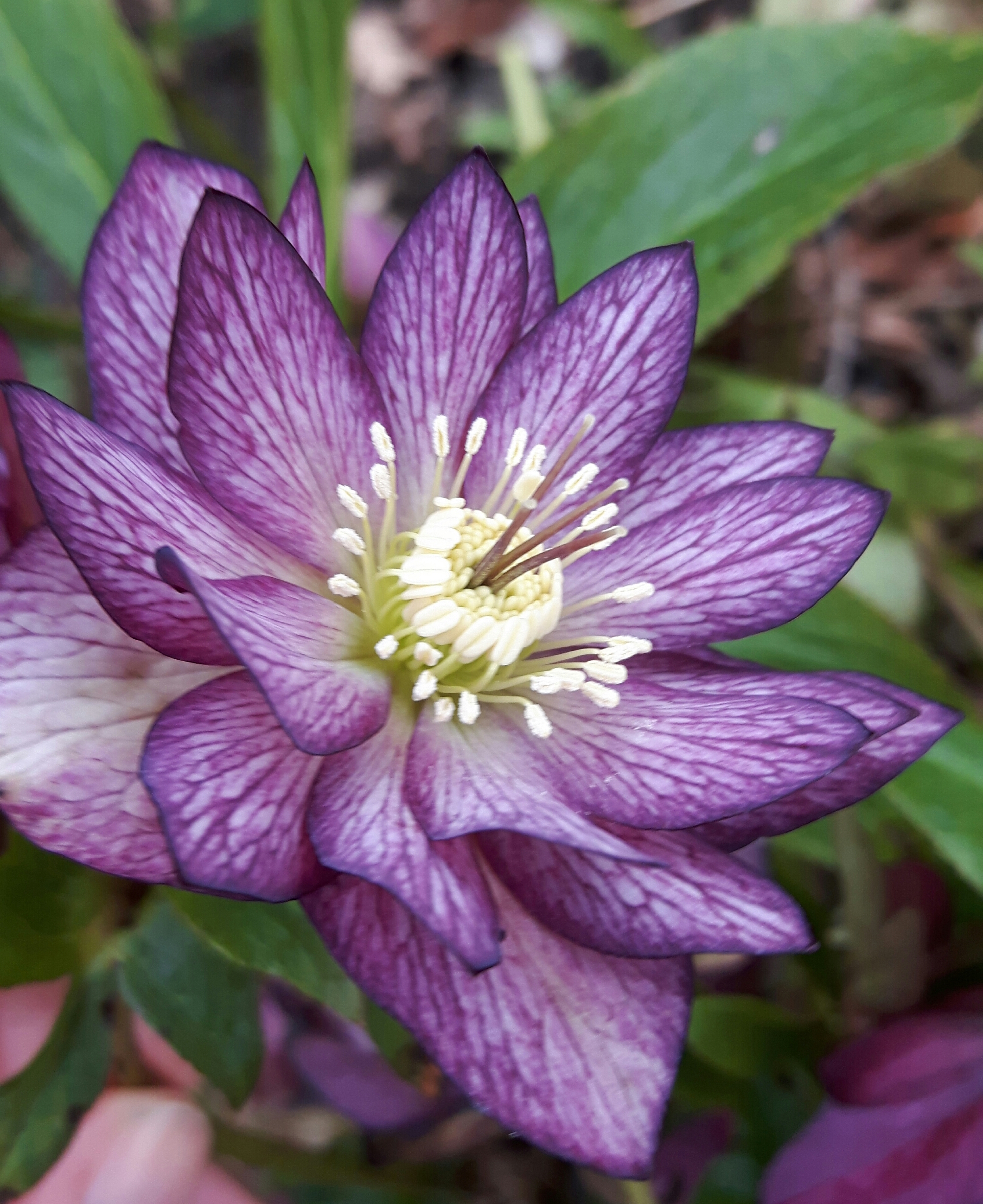 I’ve a few hellebores around the garden and they’re all giving some much needed colour. There’s a couple you can just see in the photo above behind the chicken, but there’s also some on the other side of the garden and also by the patio. The fluted one is particularly pretty, it’s been flowering since Christmas. The purple one is a gorgeous colour…