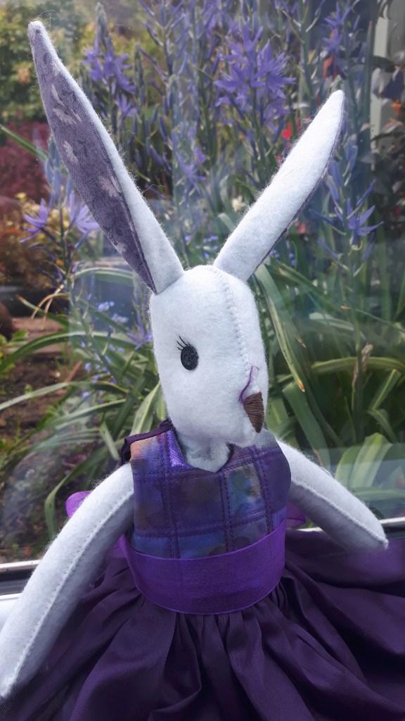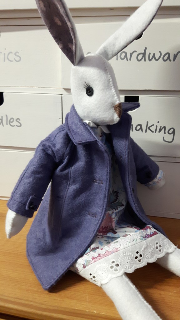 A few months ago I made a Luna Lapin, I called her Violet Speedwell. It was actually the second one I’d made, I gave the first one to my great nephew, he was called Archie. Luna Lapin is the creation of Sarah Peel of Cool Crafting in Kendal. There’s now three books of Luna Lapin, her friends and their clothes. There is also a very friendly facebook page,where people share their makes and some make up stories around them.