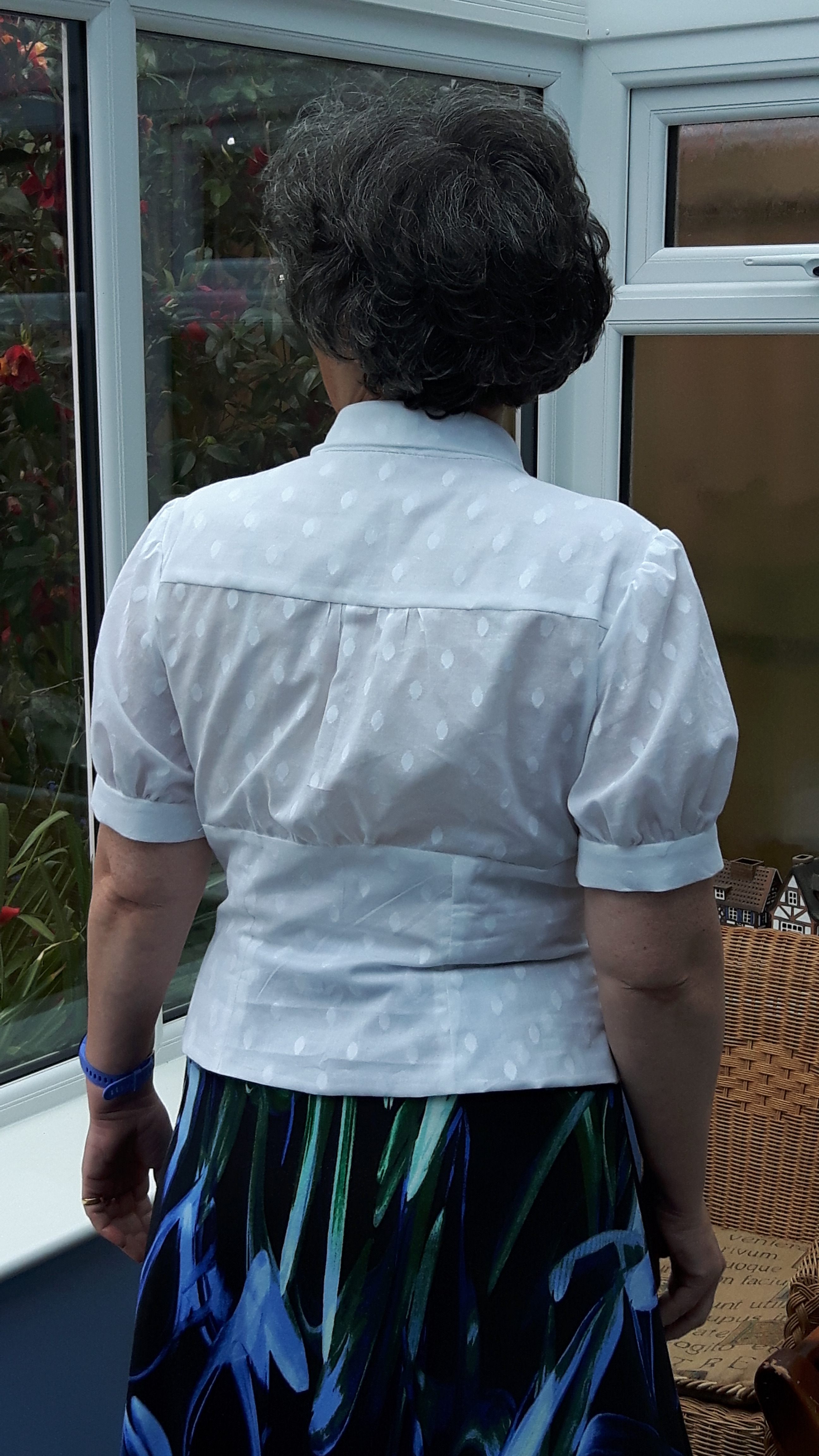 I found a lovely fine cotton, it’s what I would call spotted dimitie but with very big spots! I’ve never made a blouse pattern with so many pieces to cut out, it has over twenty pieces! The lower bodice is fully lined, it’s meant to be fully interfaced too but I felt I didn’t want the stiffness, I did interface the bodice front though as it needed the strength for the button loops. With hindsight (always useful!) it might have been better to use a plain cotton for the lining asI’ve got double dots now!