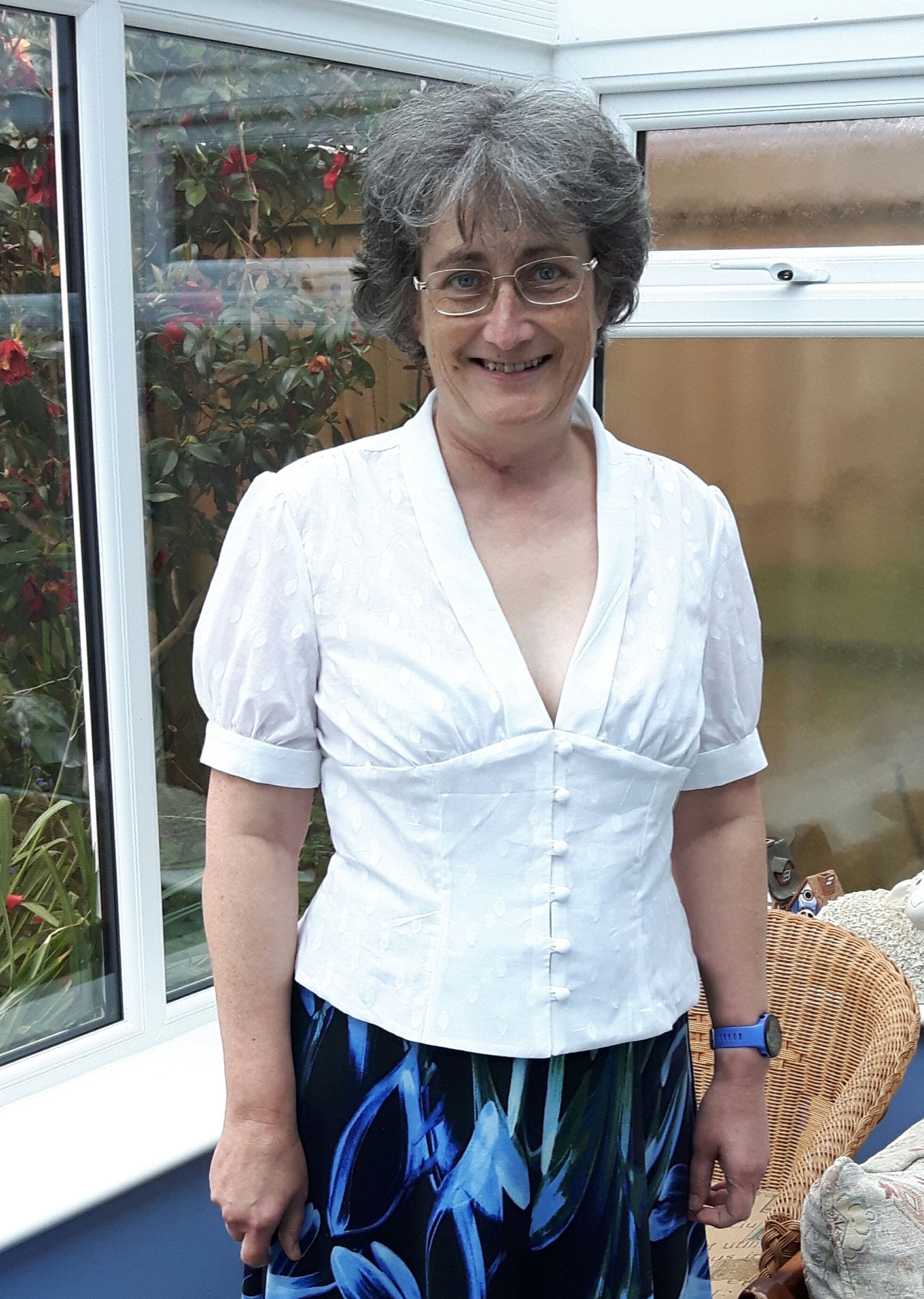 I’m pretty pleased with it, I could do with a little more room around my hips so it would sit better at the back. My one issue which I didn’t notice of the pattern envelope, is that it’s quite low cut, put it this way I’m certainly going to have to watch what underwear I wear! I also feel it would sit better if the front gather were under my bust…but that would mean even more cleavage was on show!