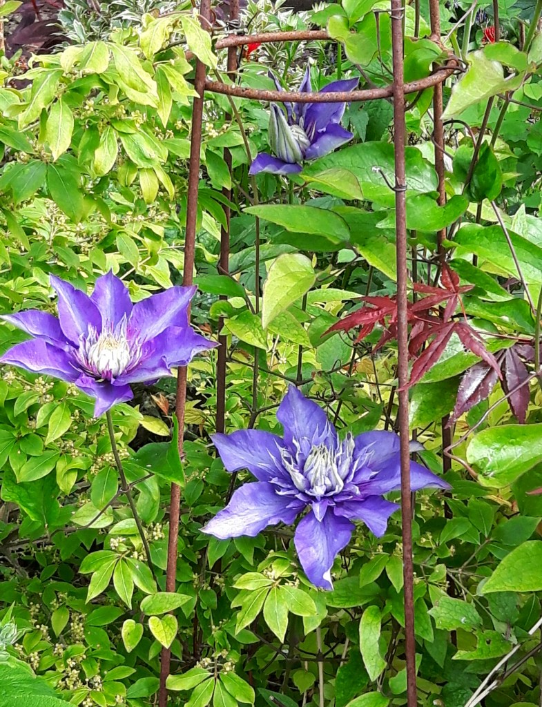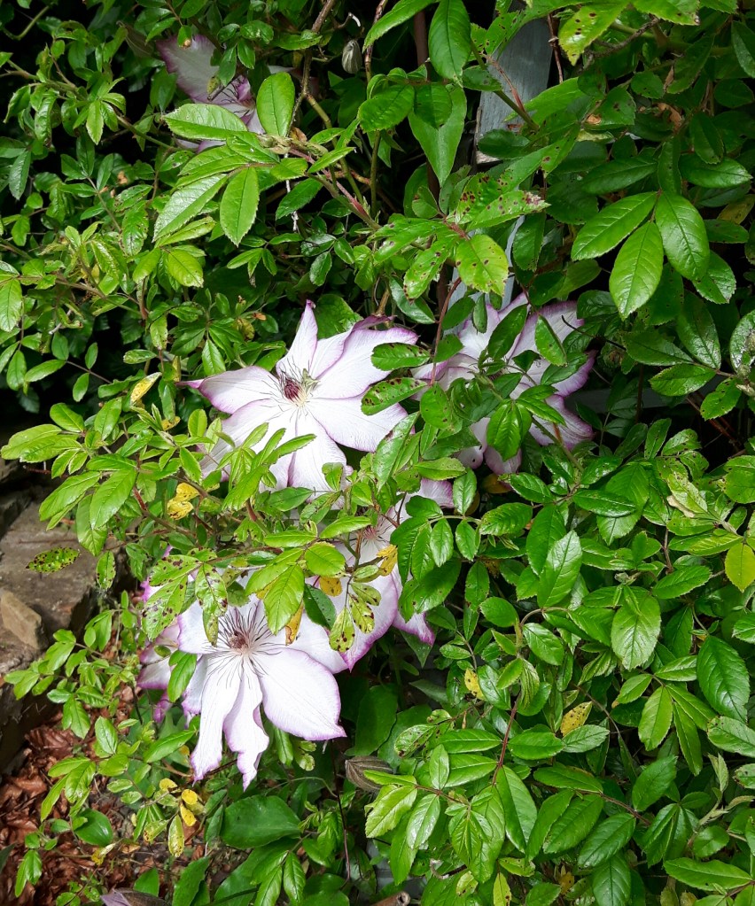 The early summer flowering clematis are all putting on a good show, they’re not very old, most were planted in the last couple of years so there’s not a huge amount of flowers but there’s some beautiful ones…
