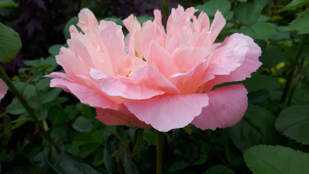 Nearby in the amber and amethyst garden is this big pink one, I think the label suggested it was purple and it clashes gloriously with the orange geum! The photo almost looks photoshopped, but it really is that bright! It’s lucky really that it’s flowers are fairly short lived as it really doesn’t go with anything around it!