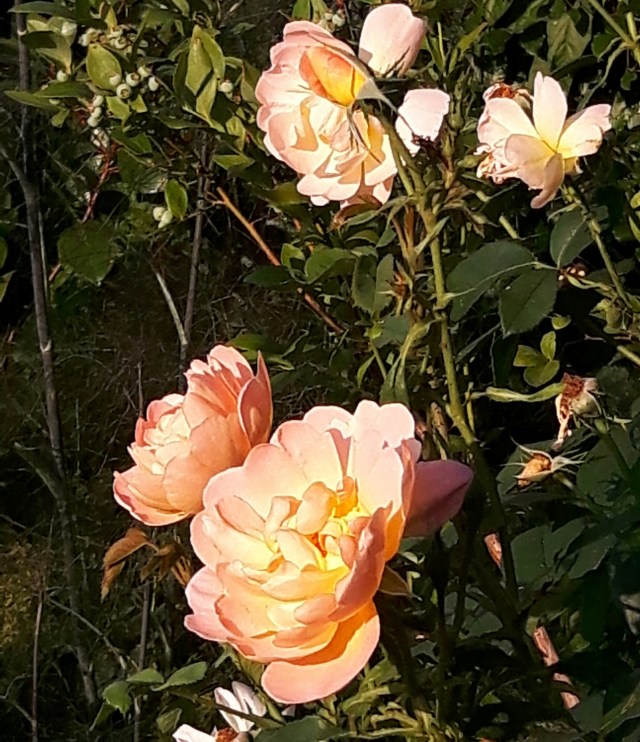 …just noticed all the blueberries on the bush behind. We’ve never managed to eat the blueberries as the birds always beat us to it.