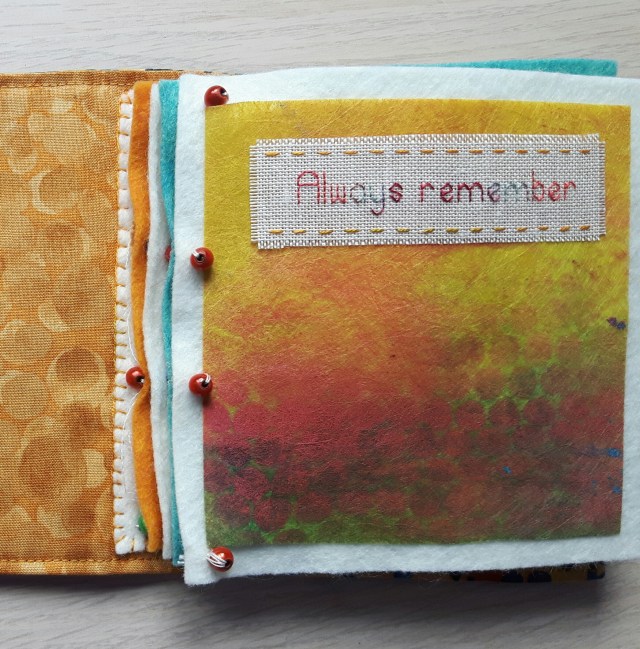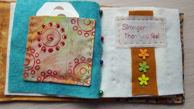 I suddenly had the idea that if you made a little fabric book with pockets in, you could put messages in there and carry it with you, a little book of comfort.