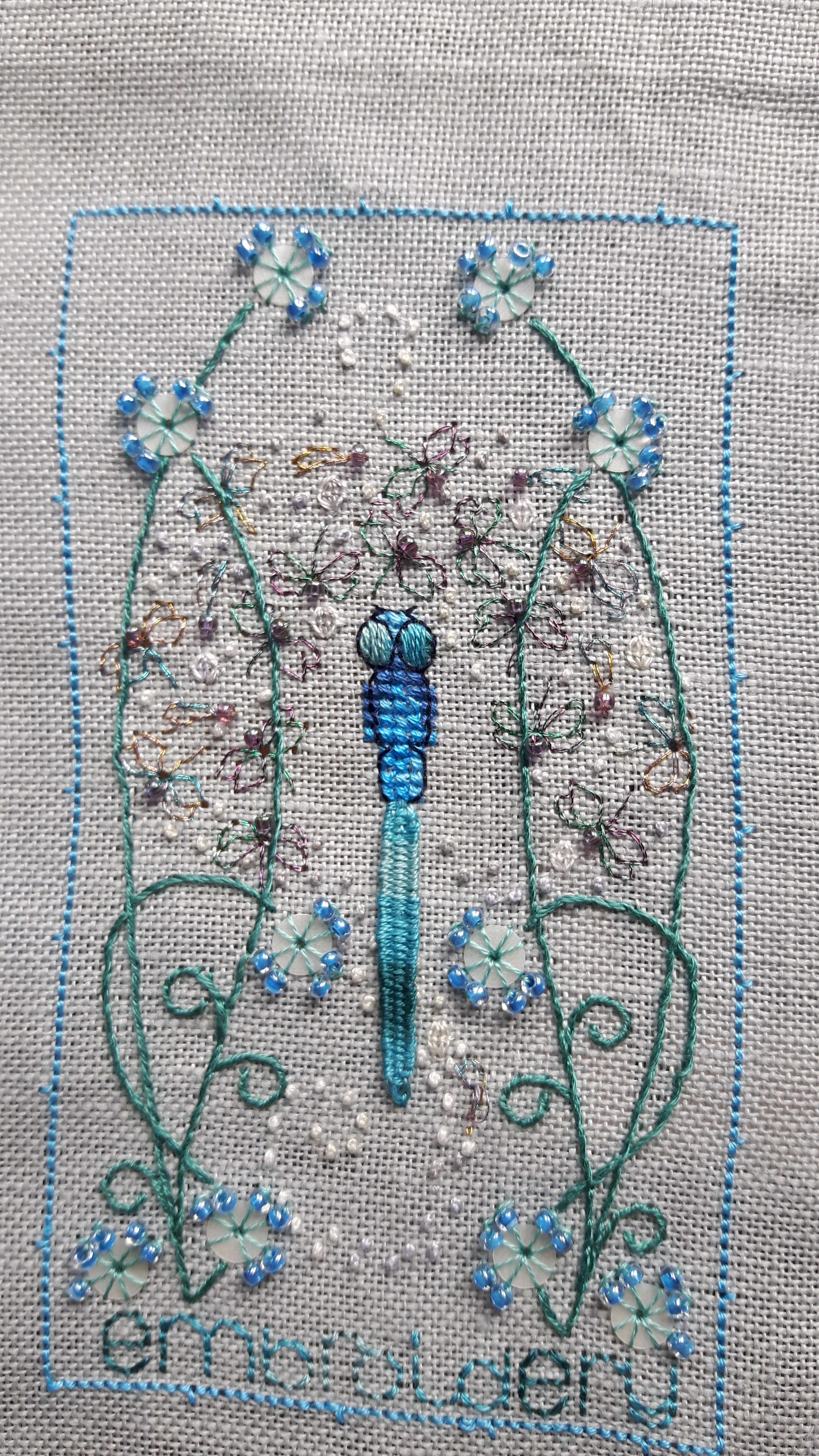 I love everything about this project and the new dragon fly is no exception! The colors, stitches, placement, marvelous, and your stitching is absolutely top notch!