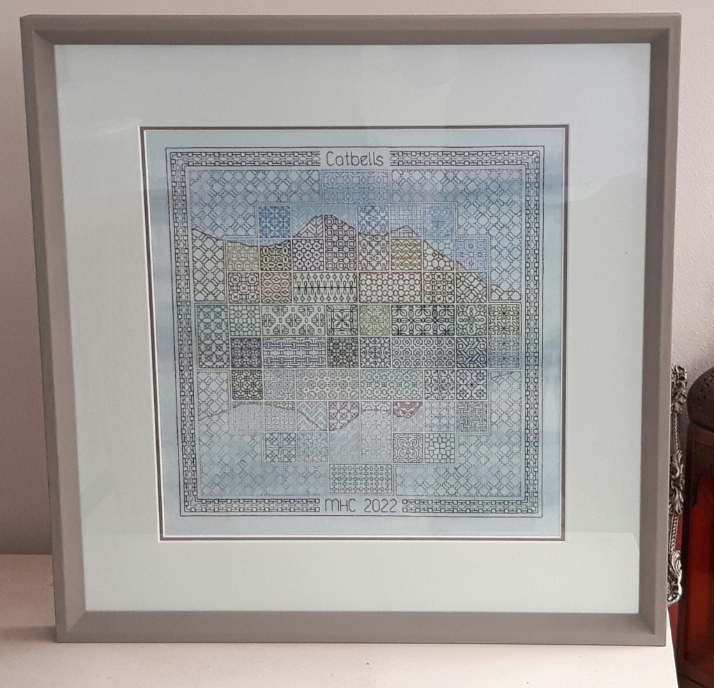 I can’t quite believe it’s been two whole weeks since I last posted, I’ve been doing a lot of stitching but issues at home have meant I’ve had little time for posting, so I’ve a few posts to write over the next few days! First off is of course my Peppermint Purple blackwork sampler which I’ve turned into an image of Catbells, a fell by Derwentwater in the Lake District which I’ve climbed many times and has a special corner of my heart.