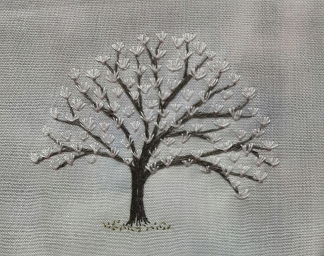 I’ve added a trunk and branches to the magnolia stellata and a few flowers. This is another bit of artistic license as magnolias flower before the leaves appear, but at least it identifies it as the magnolia! I have stitched a magnolia with the bare branches earlier in the year for the garden textile book…