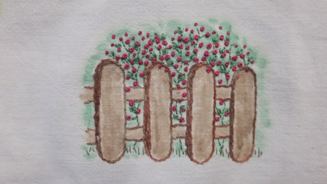 I like how your stitched garden is progessing. Your creativity is fantastic. I love the fence with the geranium.