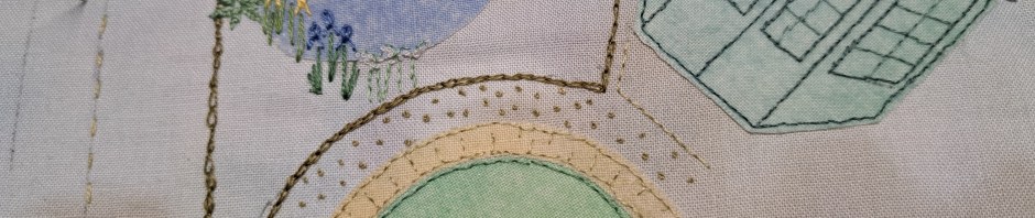 I have also finally started stitching some of the plants. I still need to add the small shrubs with applique, that will make a big difference to the piece as the borders do have quite a few shrubs as well as the shrub roses.