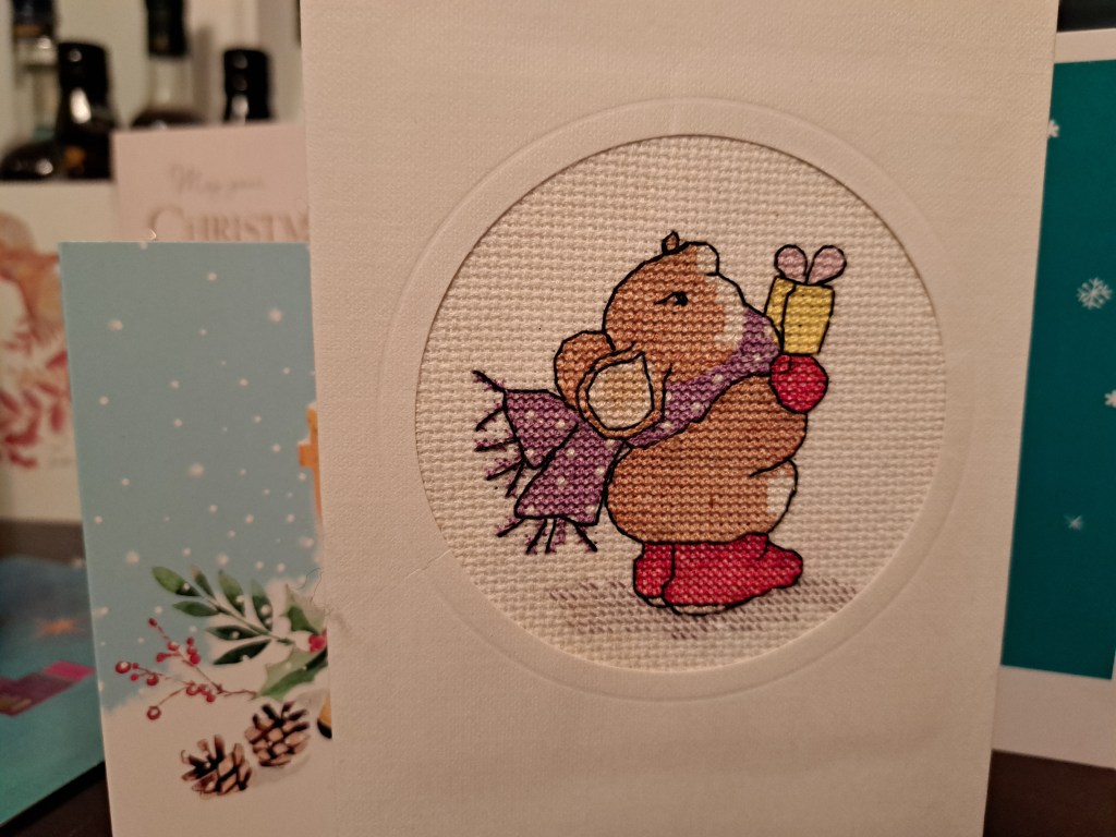 In return I got a very cute cross-stitched card with a mouse on, I’m tempted to make it into a little decoration ready for next Christmas.