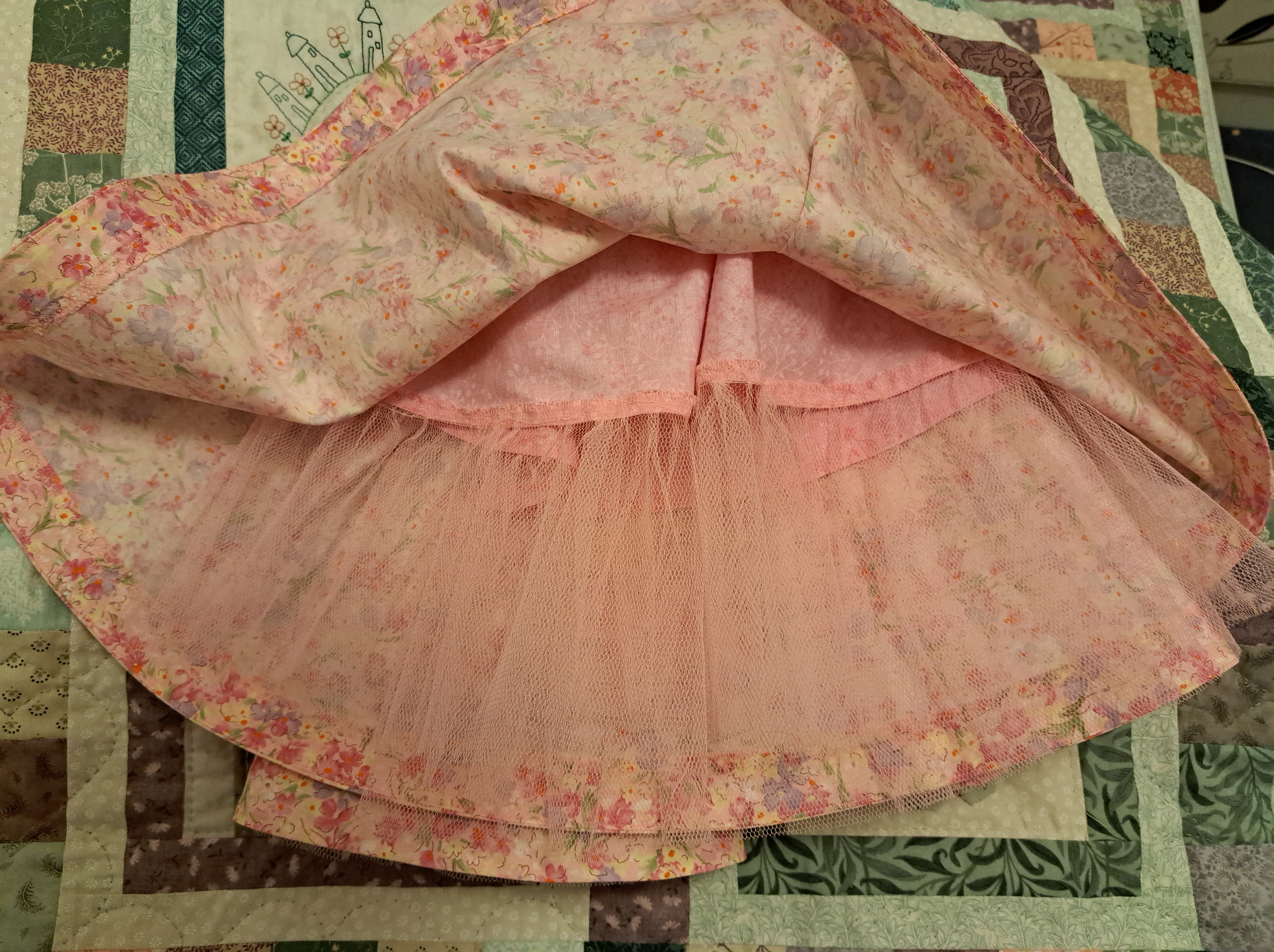 The pattern was well written with photos at every stage. The only instructions I got confused on was the attachment of the waistband as usually the waistband contains all the raw edges of the top of the skirt, whereas with this one I think they’re meant to be between the skirt and the underskirt. I presume this is to keep bulk out of the elasticated waistband.