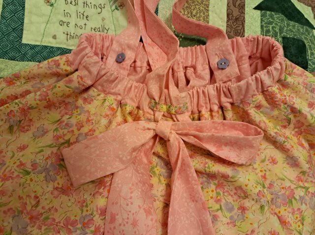 I’ve started a tradition with my grandchildren which I may come to regret, I make them a dress (or rompers) at Easter instead of giving them an Easter egg, it’s what I did with my own children when they were little. The girls love me making them dresses so I’m delighted to make them. This time I only left myself a week to make them…and then decided to paint the conservatory too! It has just crossed my mind however that whilst we currently just have three grandchildren from James and Bex, we have four children between us…that could end up as an awful lot of sewing!!!