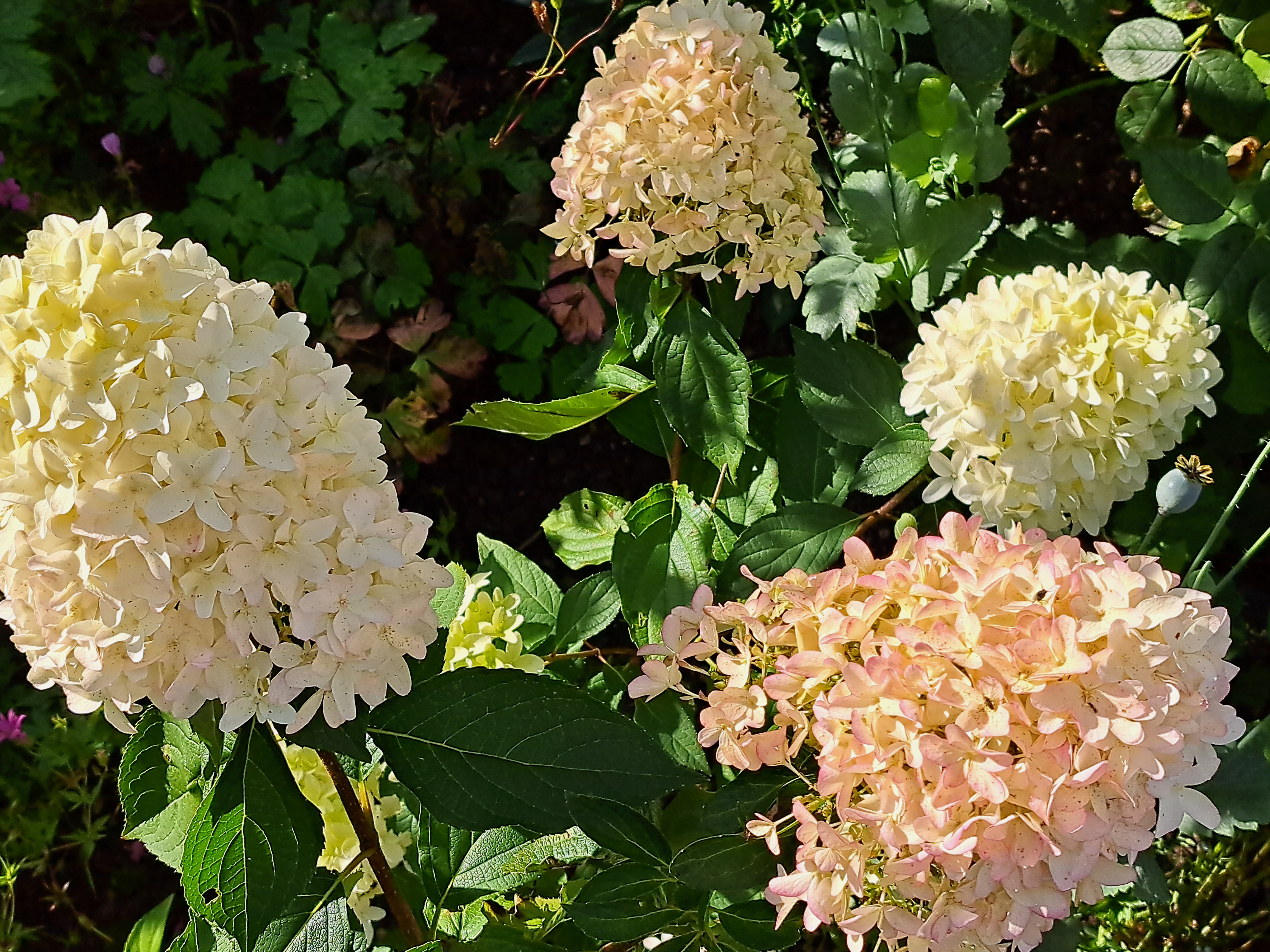 This hydrangea is by the bird feeders on the patio, the blooms have lasted for weeks, despite the inclement weather, it’s still looking beautiful.