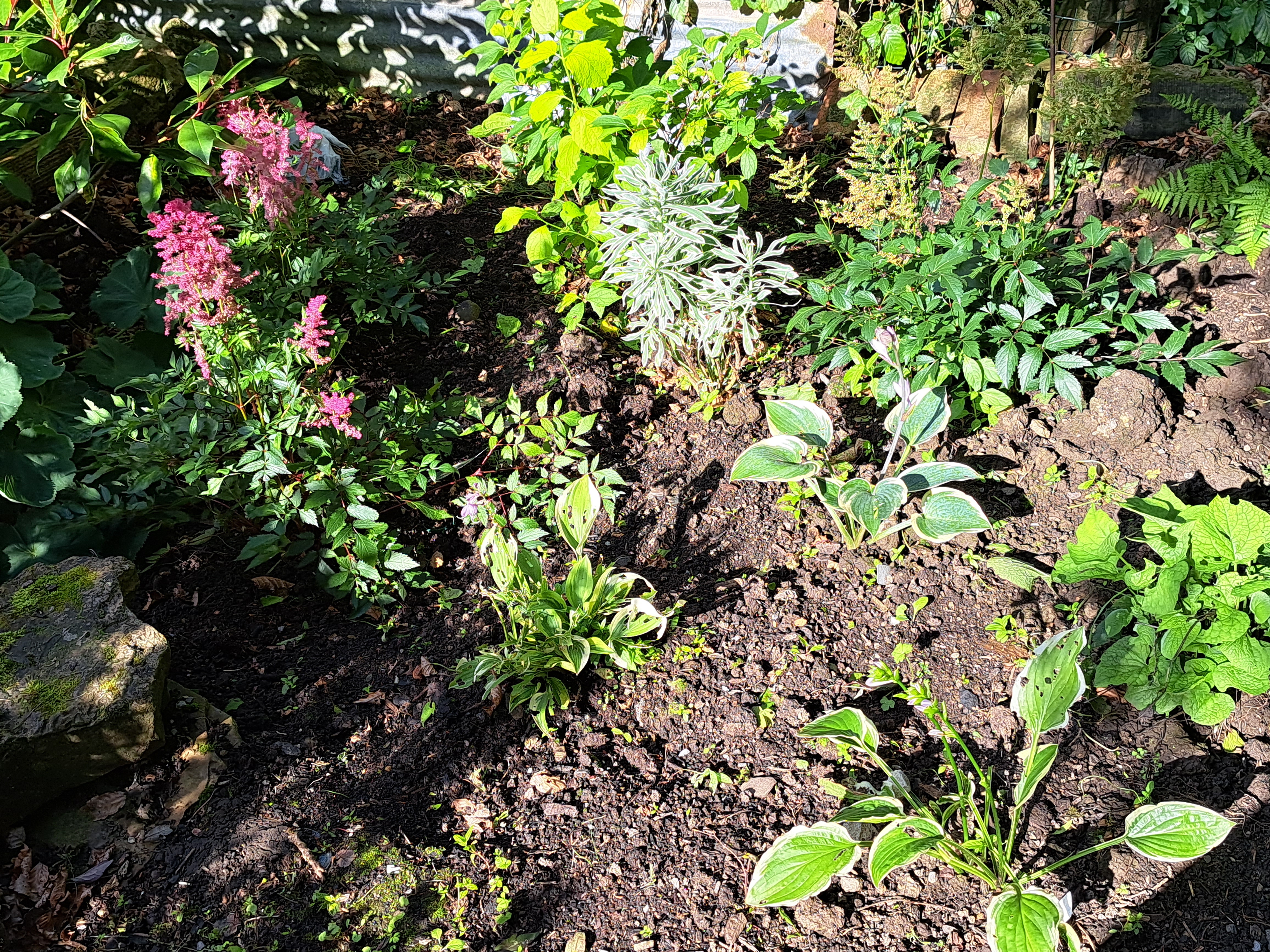 Round the pond the hostas are starting to get a bit nibbled but they’re not bad considering how far we are into the season and how damp it is (good slug weather!) The alchemilla mollis needs tidying up before that seeds all over the place too.
