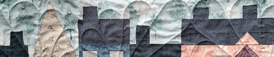 I decided I would be more than happy with what I would call a partial custom quilting, using different patterns around the medallion borders. I chose one for the triangles in the outer border with piano key quilting at the very edge. The wider border with the houses on has a feather border and then the central design has a lovely swirly pantograph.